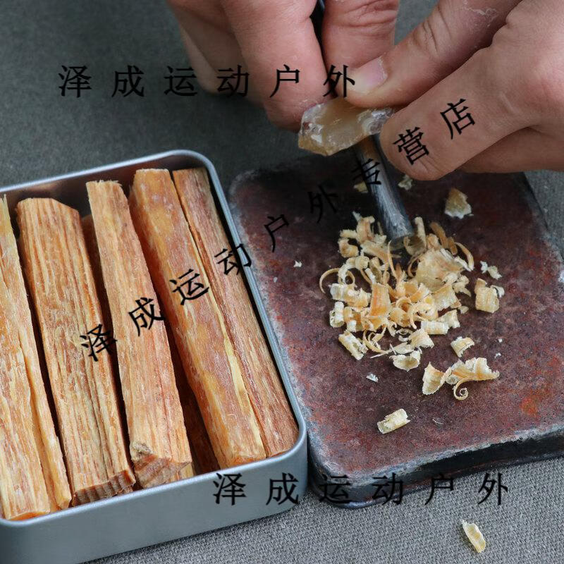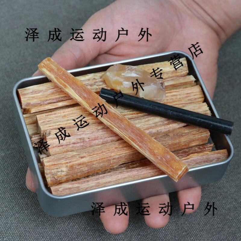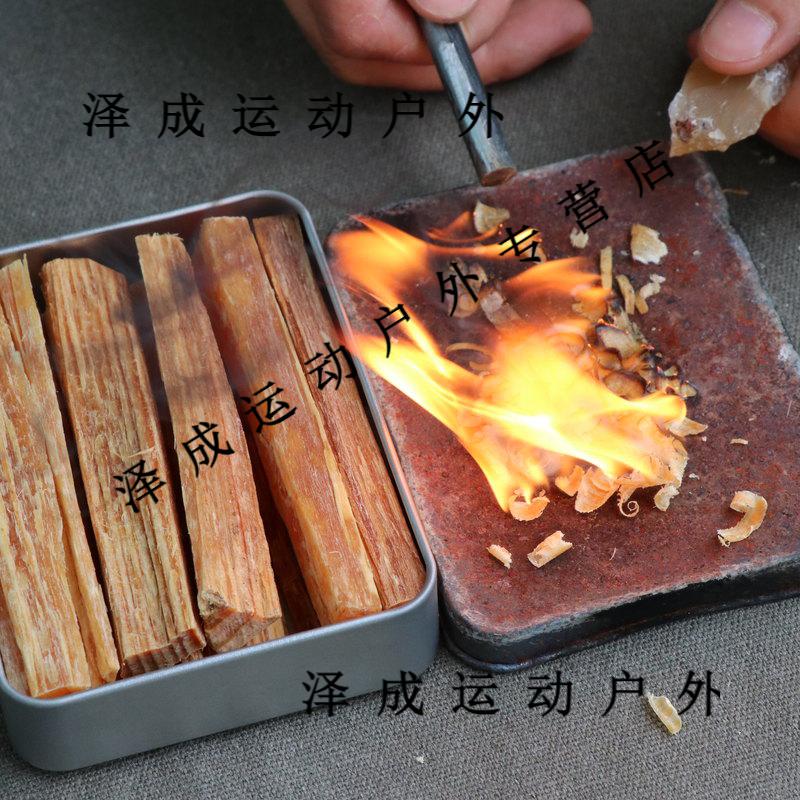合武引火精装优质松明盒装野外高油脂引火物求生火绒松油松脂松 10根以上+打火棒+刮片+盒子