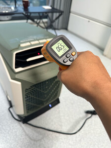 非常霸气外露的一款室外移动空调,风量巨大,制冷迅速,能非常快的进行极速降温,能耗非常低,一度电可以用接近2个小时,非常适合室外移动供电的场景,而且噪音适宜,不会很大可以接受,外形真的非常科幻来形容,开始后感觉非常舒服,在出风口处有明显的非常冰冷的感觉,据测评出风口处温度最厉害可以达到3度约,的确是一款制冷能力非常棒的空调,而且可以装程序APP,可以在程序里面实现对空调的一键控制,实时监控空调的能耗类似。