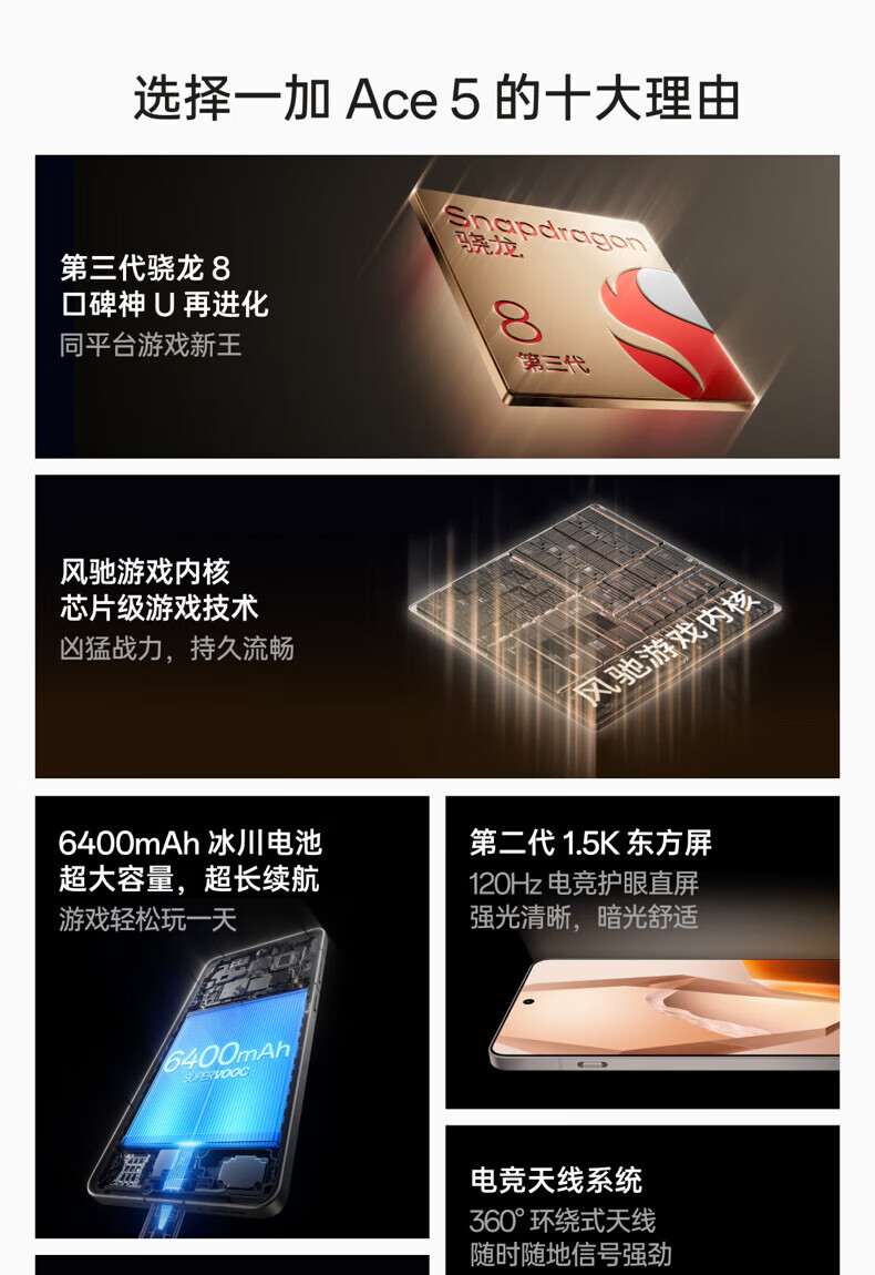 超级闪充牛 一加手机ACE5 口碑不错,好久想买了 赶上活动 这就买下了 手机外框霸气侧漏美观大方 上手感觉非常好系统流畅我喜欢这款手机 第三代骁龙8处理器不服不行啊。