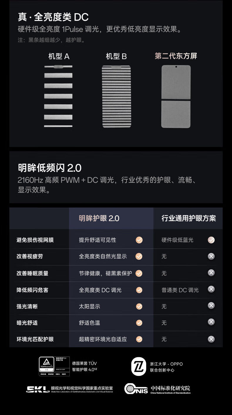 LTPO屏幕;第二代动态AMOLED;德国莱茵护眼;高频PWM调光