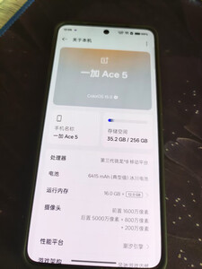 新款的一加ace5,收到手机,迫不及待的打开,发现外形外观好看,漂亮极了,简直爱不释手。屏幕音响音质很好,听歌看视频棒极了。拍照效果极佳,清晰无瑕疵。运行速度非常快速,点开图标及运行。待机时间很长,6400的大电池,真的很给力。信号极佳,通话及网络视频电话,非常好的。爱不释手的心中期待已久的手机。