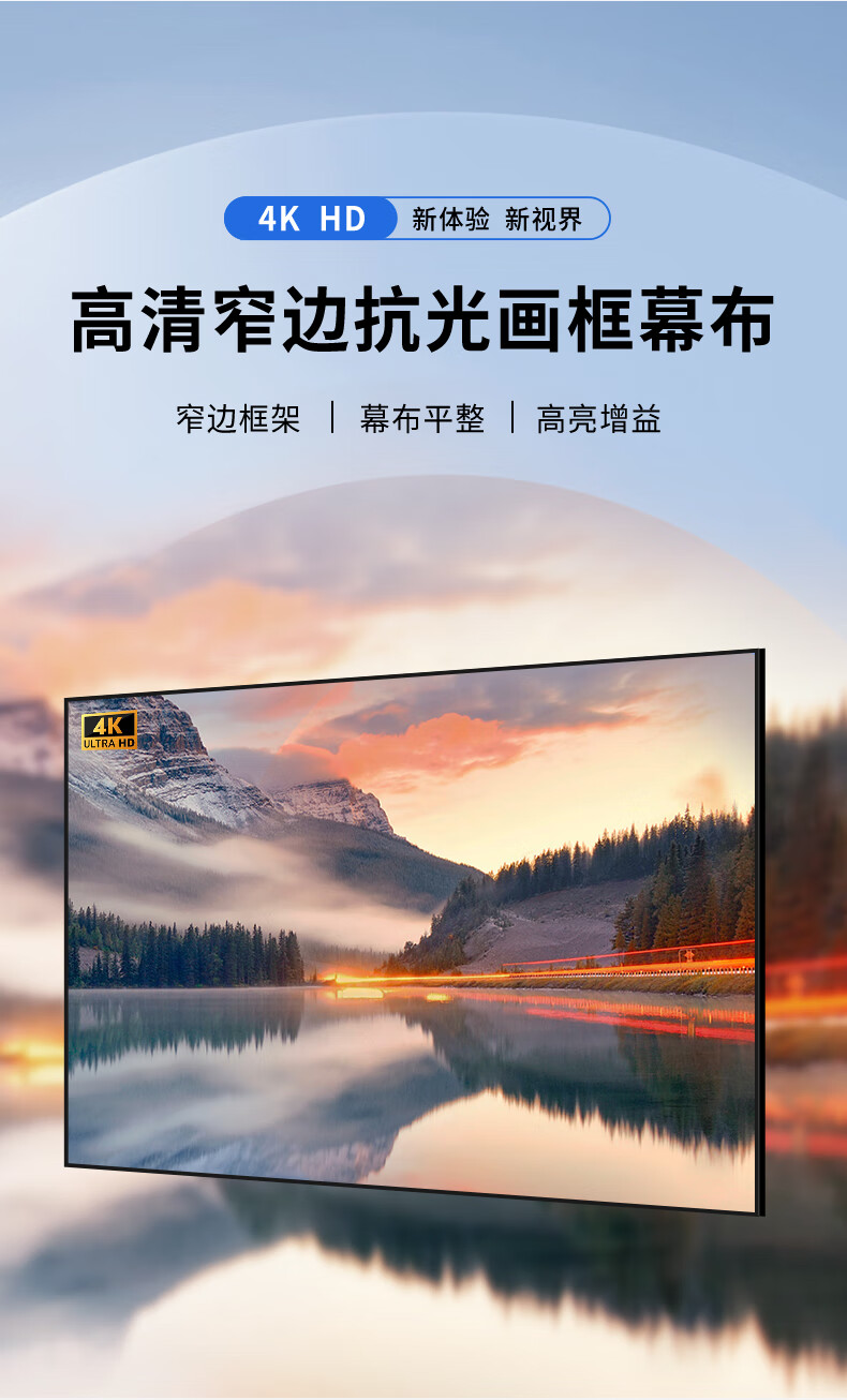XBJIA投影幕布一体式免组装高清4K抗光家用客厅画框幕布超窄边100寸投影仪幕布家庭影院 120寸16:9【免组装/整块发货/平整无褶皱】 灰晶抗光Maxpro【自行安装】