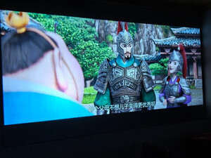 总算找到了这一款短胶,百度屏,颜色特别的好,虽然比不上高档的哦,不但是比白墙上播放投影图像那样好的太多了,看看清晰度是有欠缺的,但是不影响观看商家准备的这一款幕布是免组装的回来装上挂钩以后直接挂上去就可以了,非常非常的方便