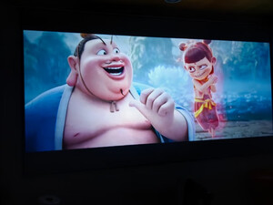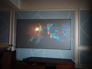 幕布收到了,比之前家里的平整,因为之前的只是一块布,没有边框的,现在有边框好很多了,不会有皱褶了。