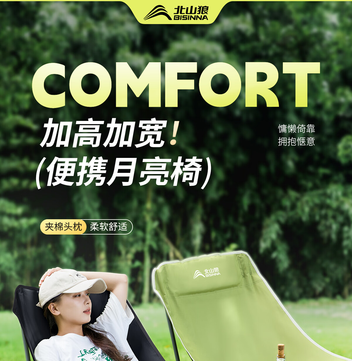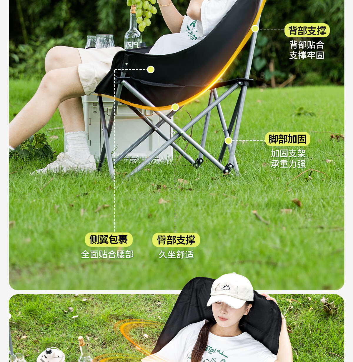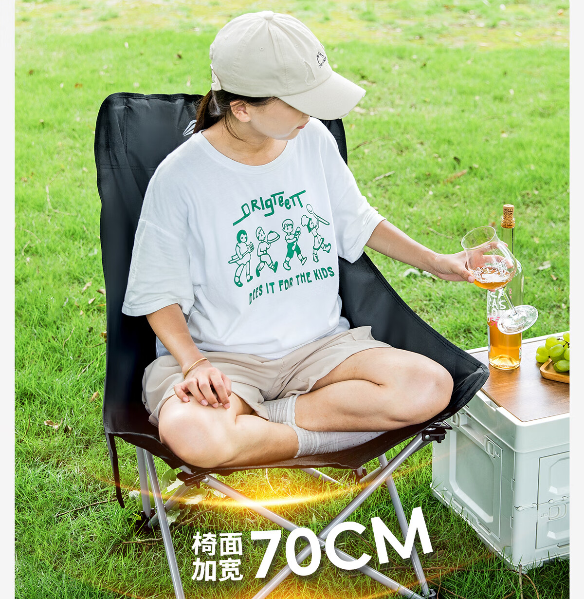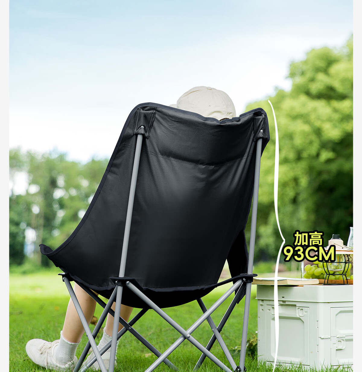 北山狼户外折叠椅 加高加宽折叠靠背月亮椅露营折叠凳便携躺椅钓鱼椅 曜石黑-高背月亮椅【加宽加高升级版】