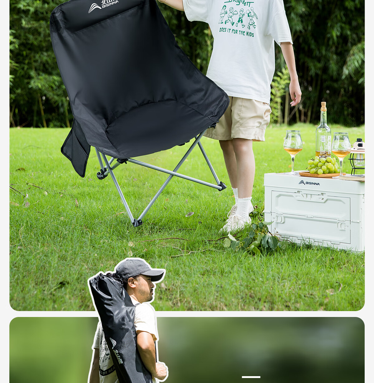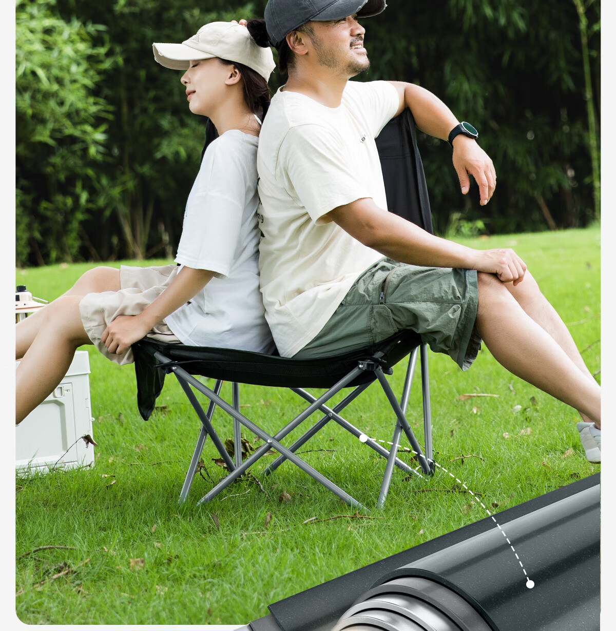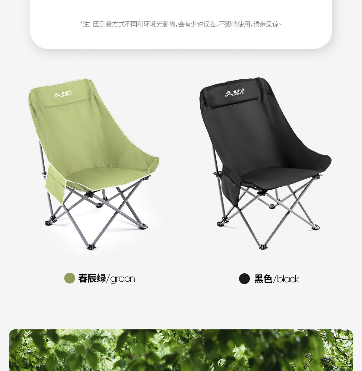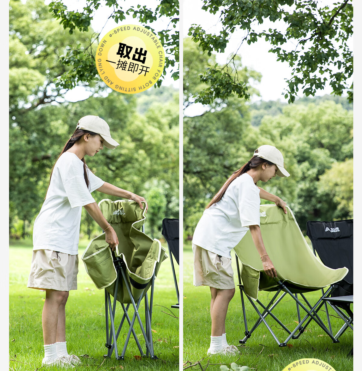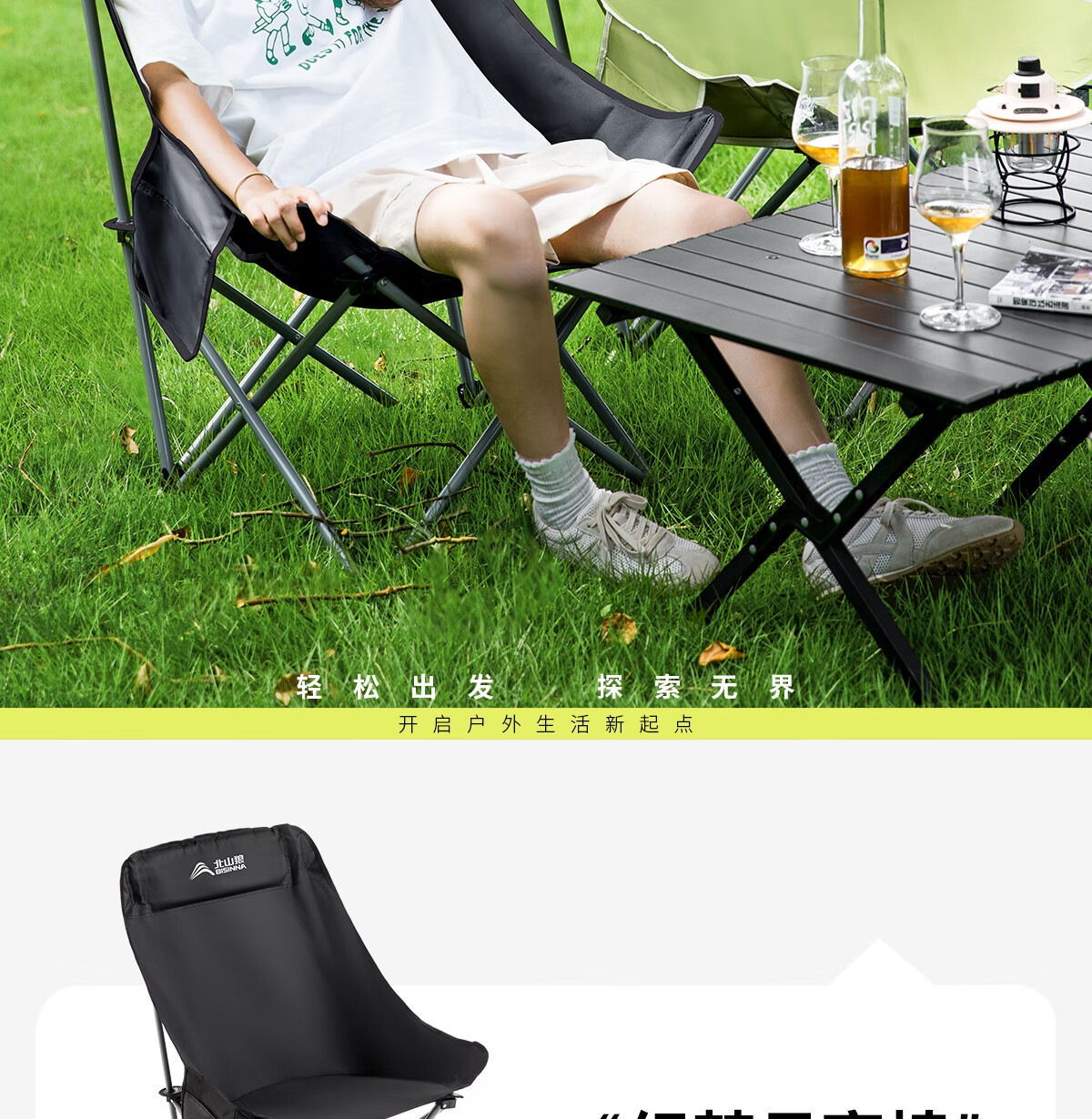 北山狼户外折叠椅 加高加宽折叠靠背月亮椅露营折叠凳便携躺椅钓鱼椅 曜石黑-高背月亮椅【加宽加高升级版】