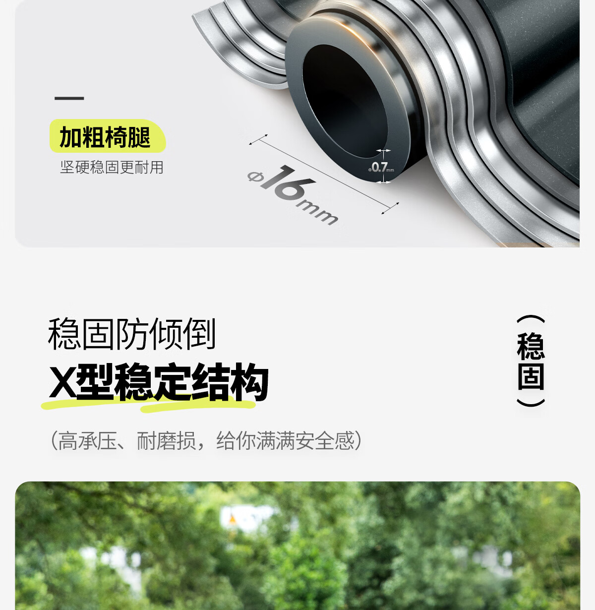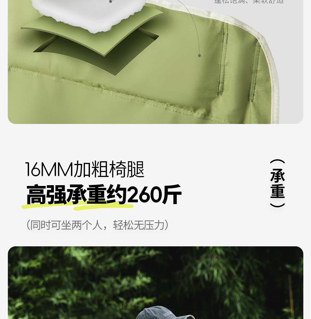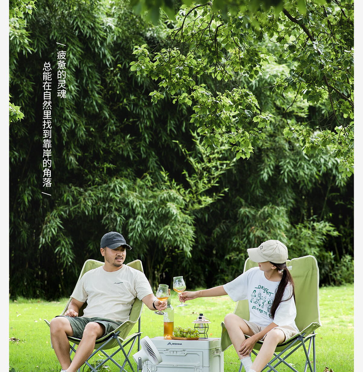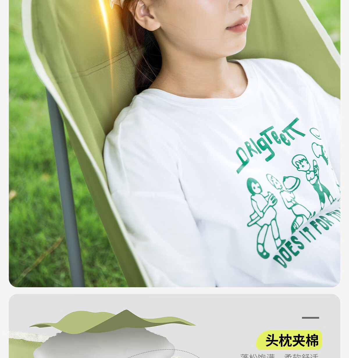 北山狼户外折叠椅 加高加宽折叠靠背月亮椅露营折叠凳便携躺椅钓鱼椅 曜石黑-高背月亮椅【加宽加高升级版】