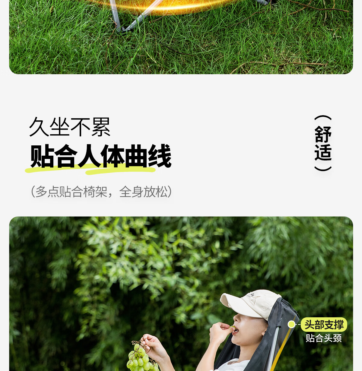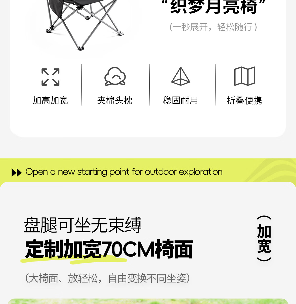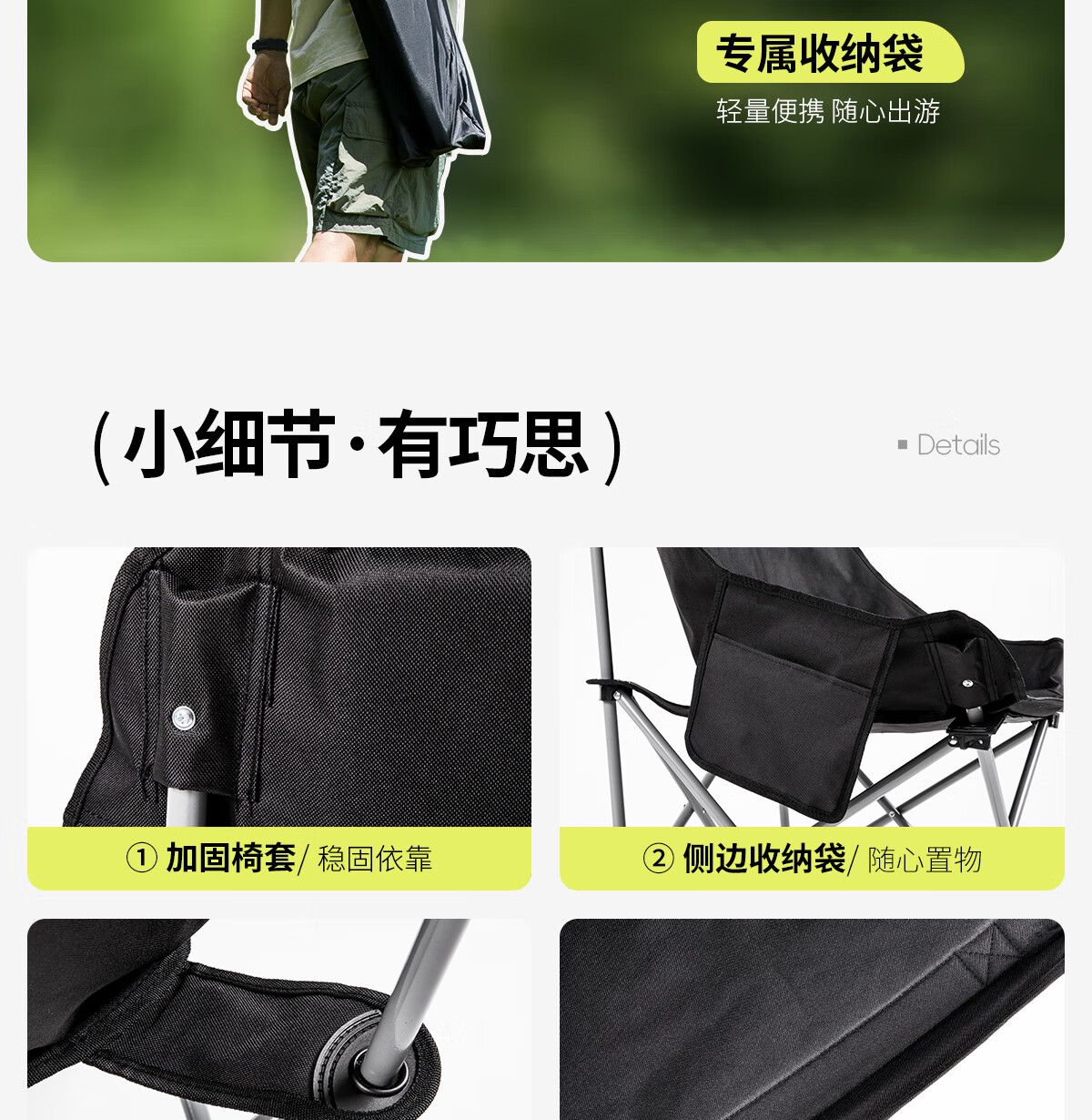 Naturehike挪客便携折叠月亮椅 户外露营休闲办公超轻铝合金钓鱼导演沙滩椅 黑色
