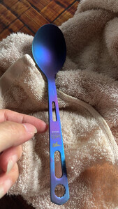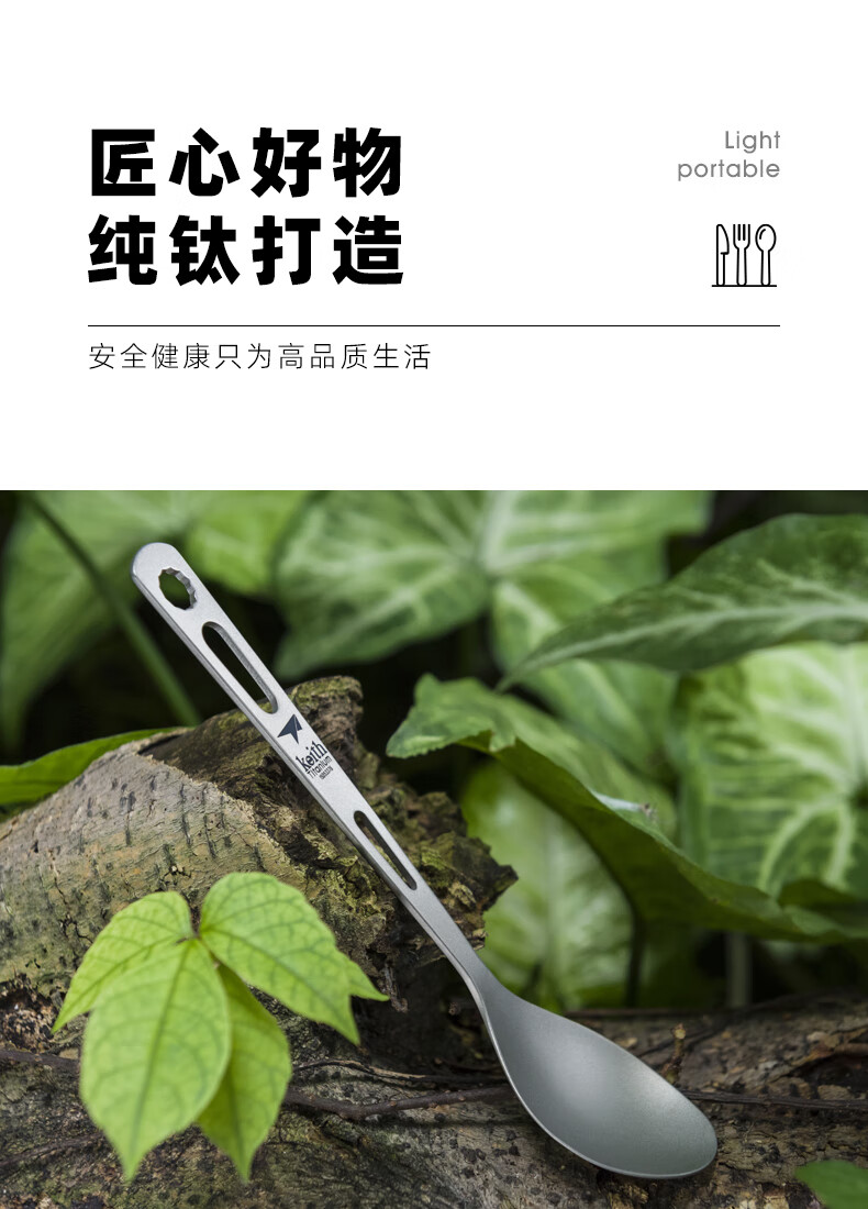 钛的材质很轻,也比较安全,跟泡面盒一起买的,感觉就还了呀,就那样,不怕火烧,火烫的,不过现在也没咋使用,用的是硅胶材质的汤匙,比较软!!!!