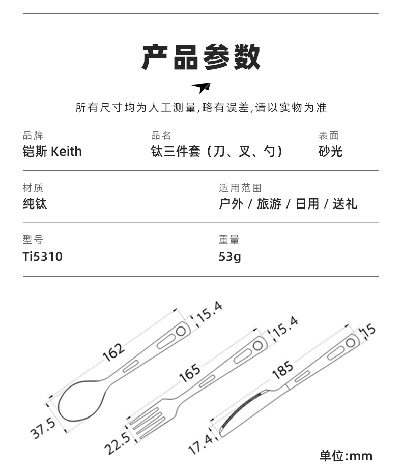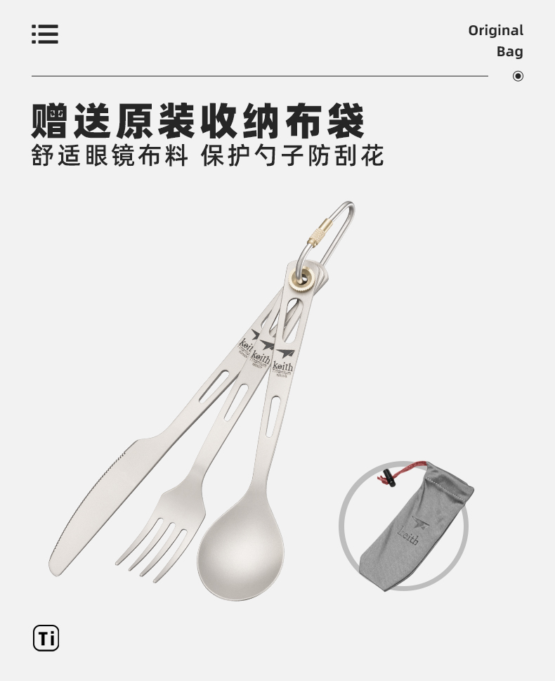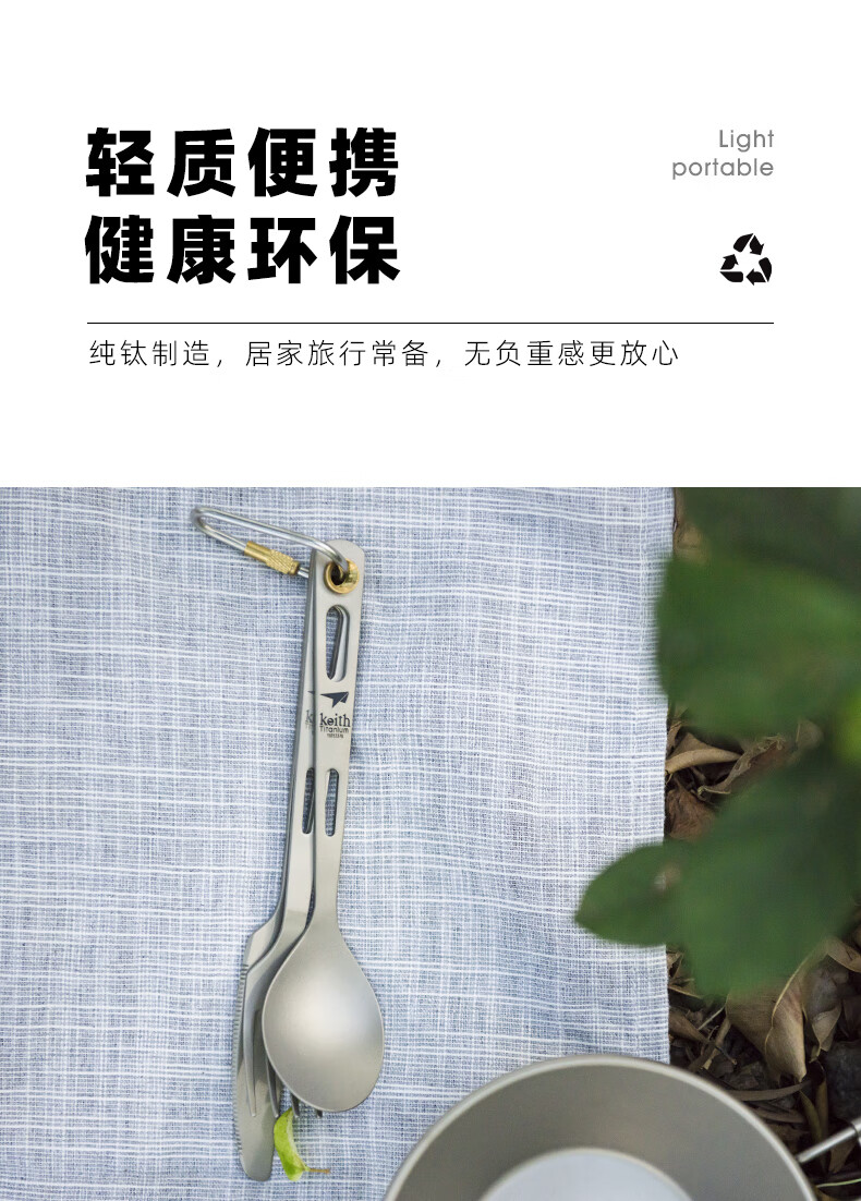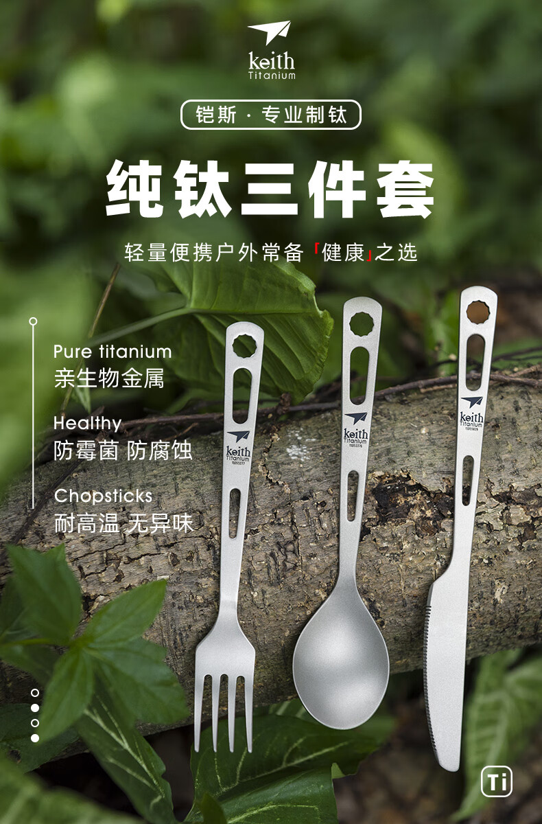 铠斯(KEITH) keith铠斯纯钛餐具户外野营便携餐具钛叉子钛勺刀叉勺套装 刀叉勺 餐盒装