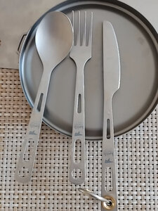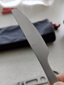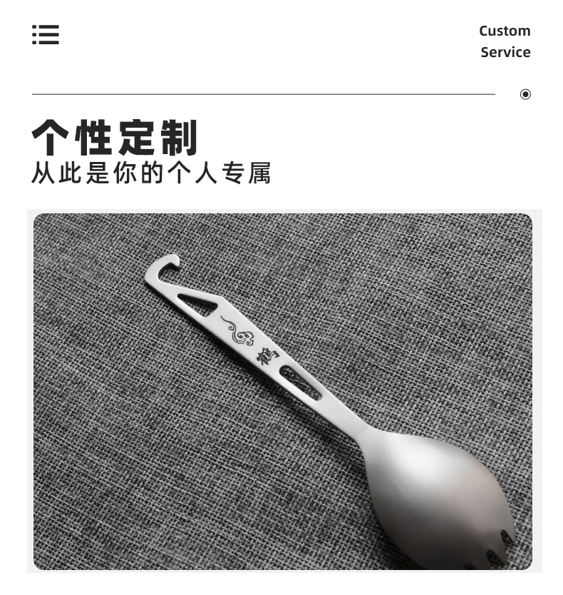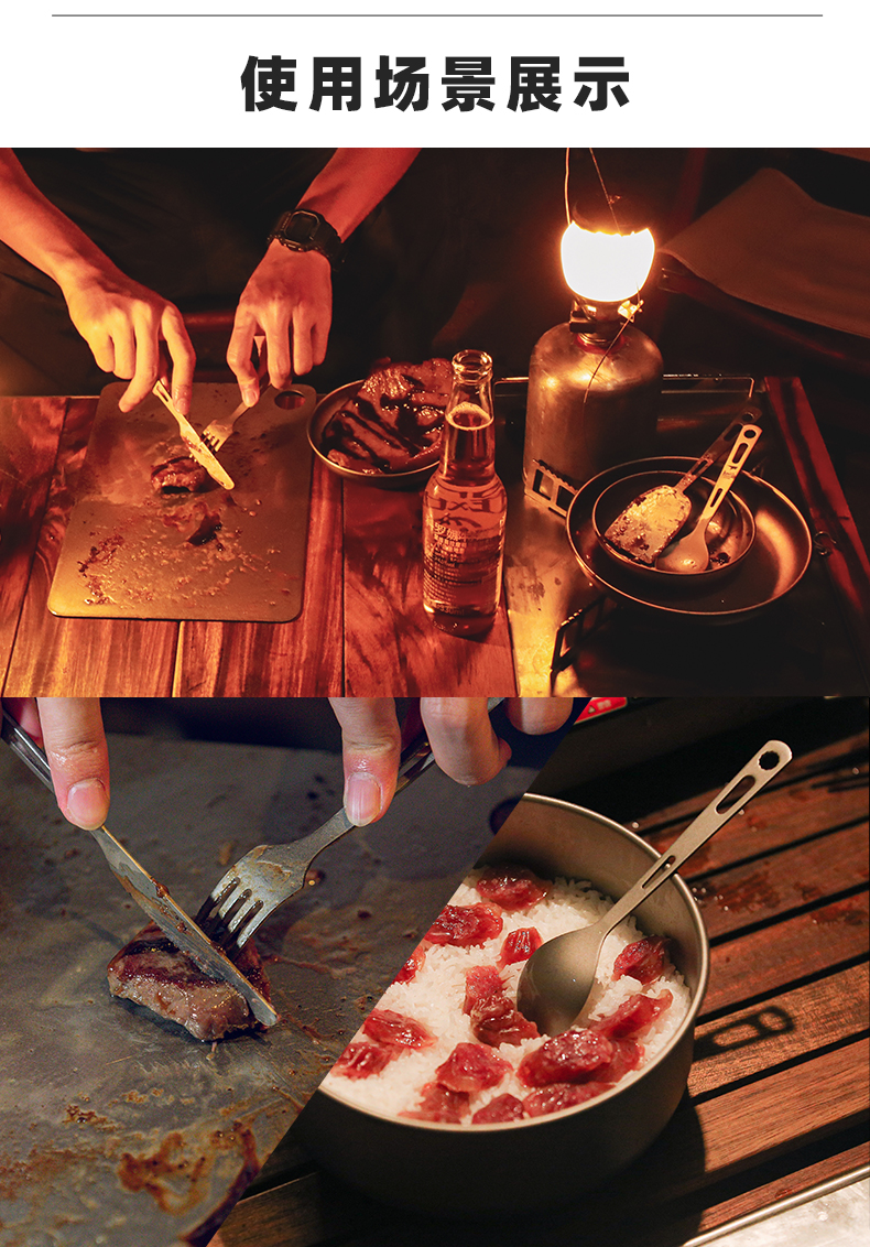户外餐具等不少设备,都选用的铠斯,虽贵些,但做工精致,用料扎实,识别度也高,也是经久耐用,这款钛餐刀配合最近出行使用,就是忘了刻字,有点遗憾,下次再买一把。