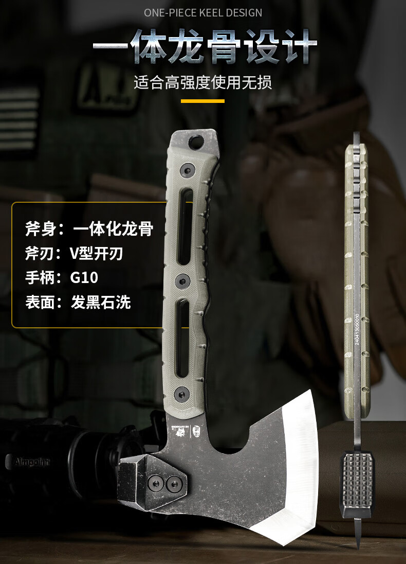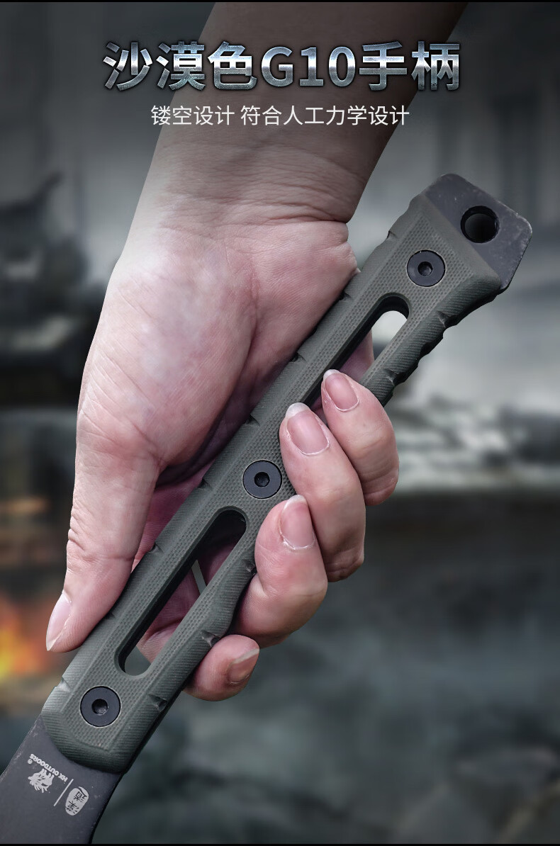 汉道户外战术斧头工兵斧一体龙骨野营斧战火破拆斧 军绿色