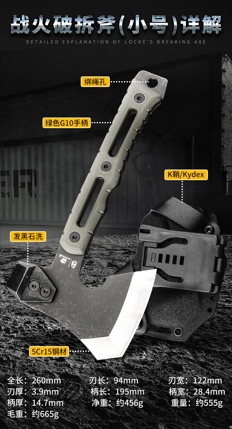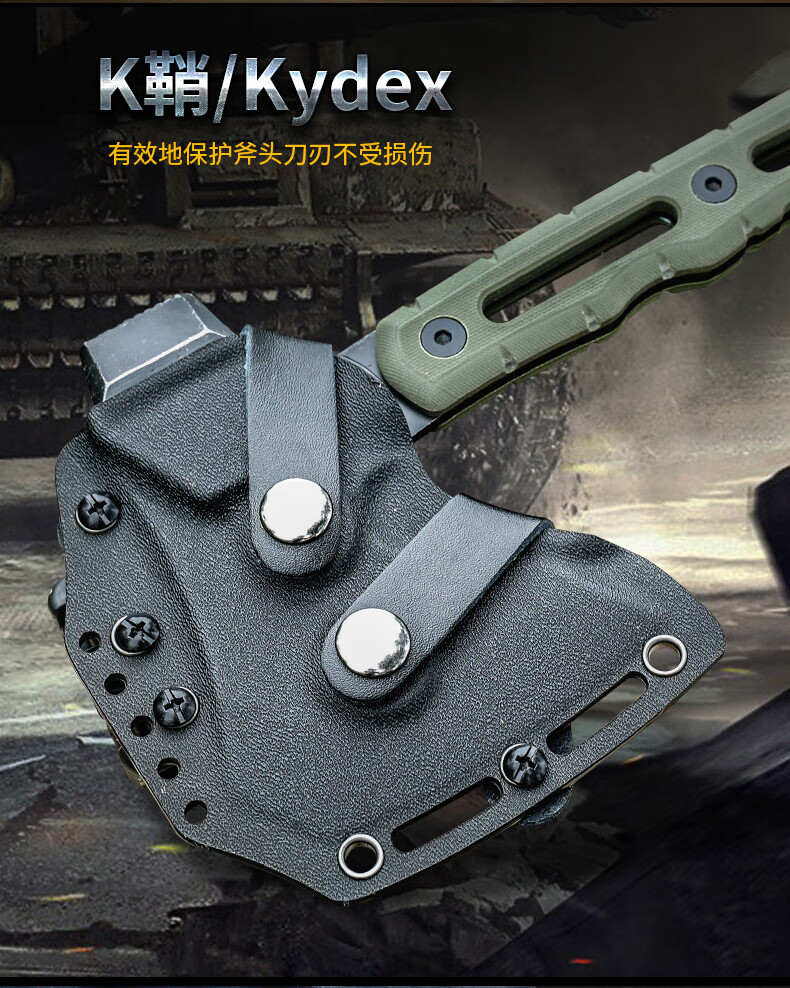 斧头还可以吧,给网上描述的差不多,外套就是瞎说的,特别不好用,还不如直接来个人造皮革的好用,特慢使用!别被视频忽悠了价格有点贵了吧!