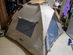 帐篷已经收到了,周末和老婆孩子去试了试,挺不错的,安装喝收纳也不算复杂,大小也正合适,就是收纳袋子有点太紧吧了吧,稍微宽松点多好。