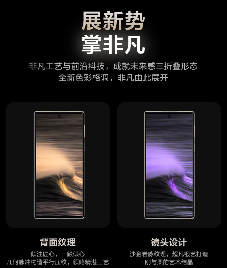 AI大模型,折叠屏,卫星通话,轻薄,LTPO屏幕,高频PWM调光,全焦段影像,无线充电,NFC,红外遥控
