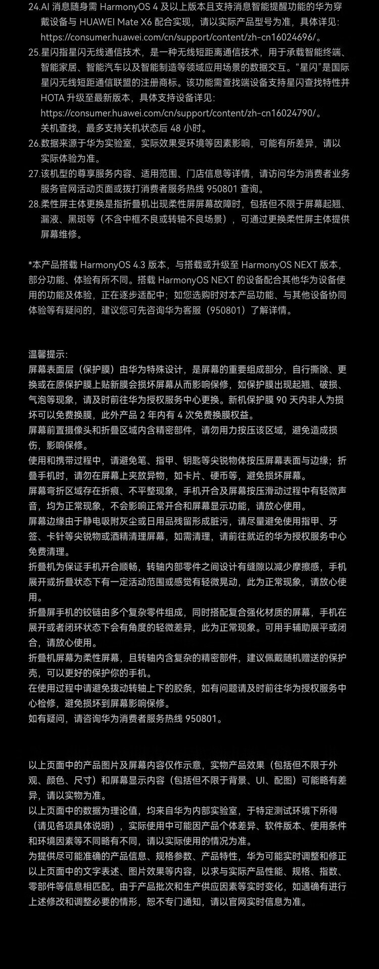 华为 新品华为/HUAWEI MateX6两折叠屏手机鸿蒙红枫原色影像 全新现货 星云白 12GB+256GB 国行未激活 鸿蒙4.3系统