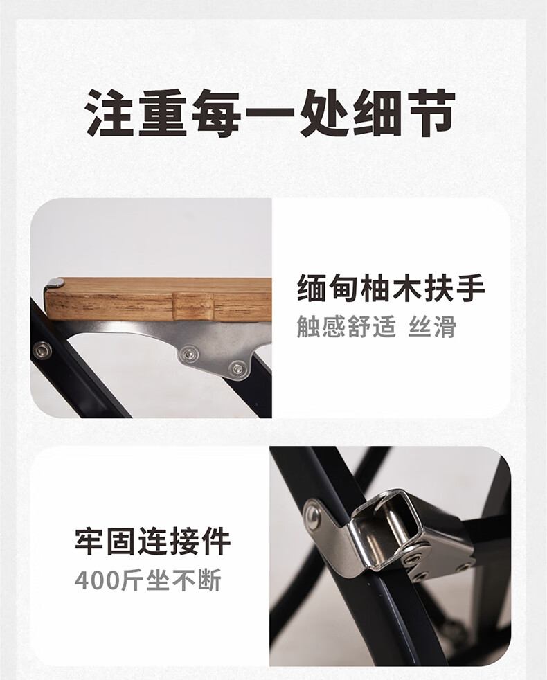 山扉云绮 户外折叠椅全铝合金克米特椅阳台休闲超轻便携式露营椅 黑