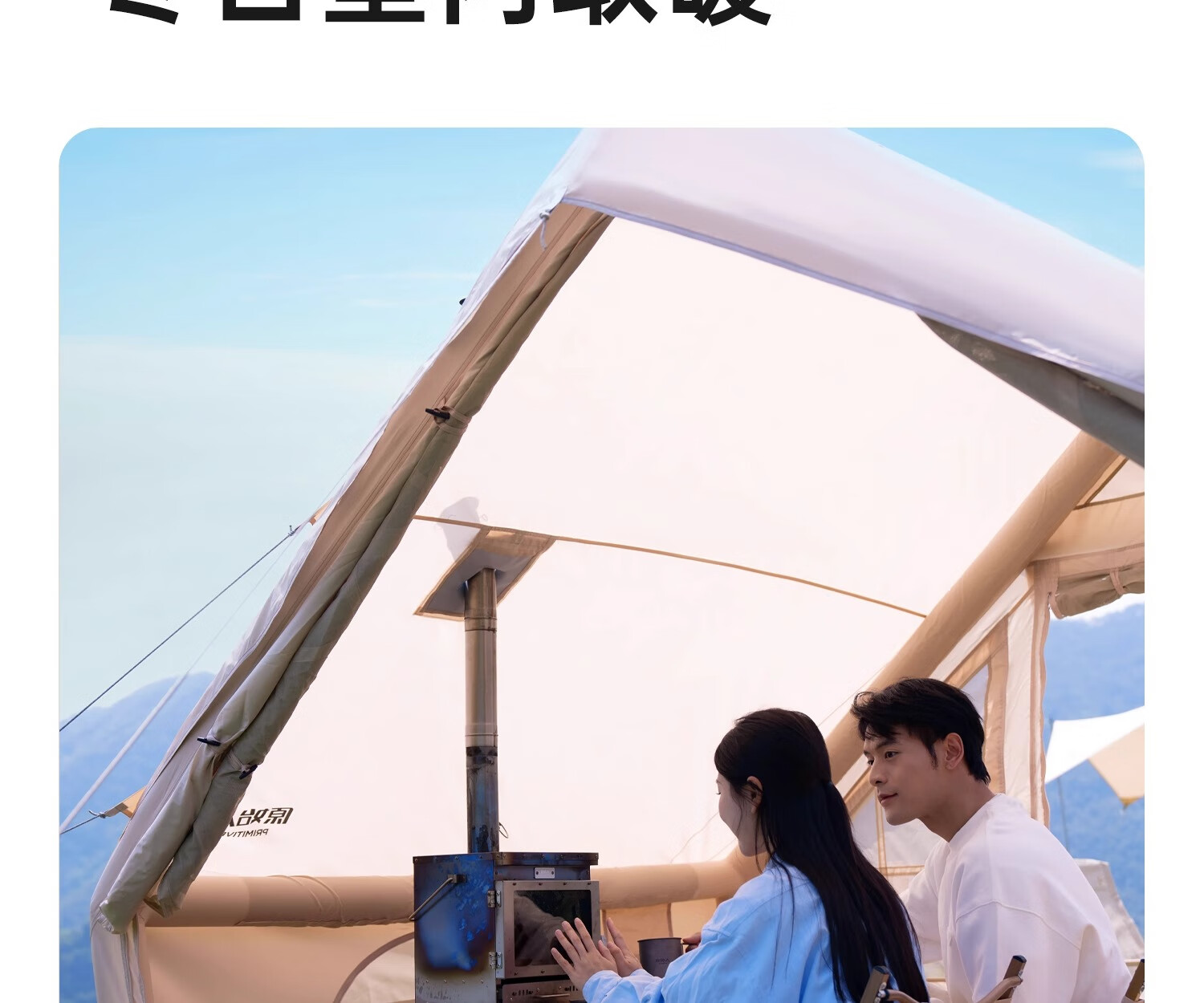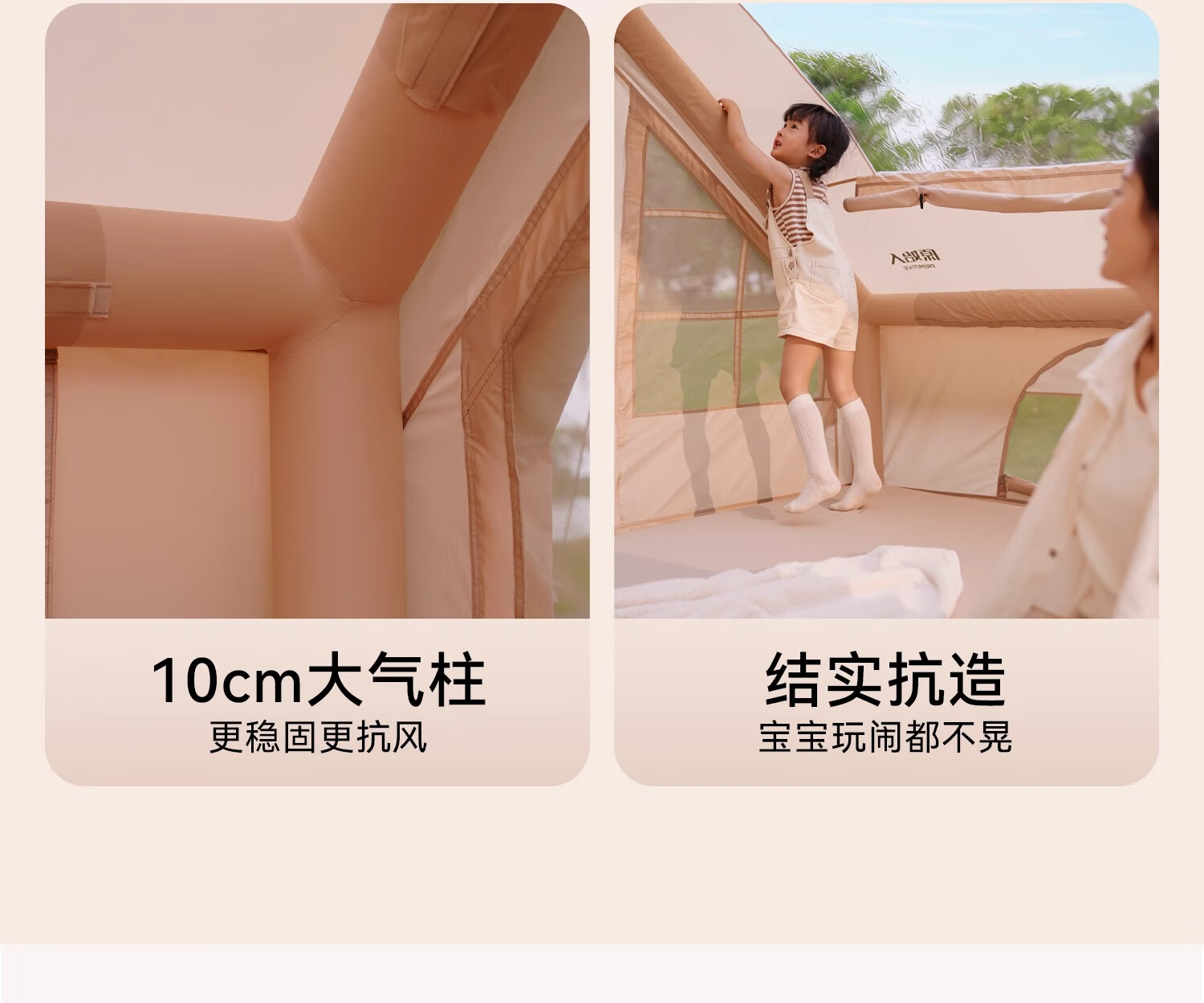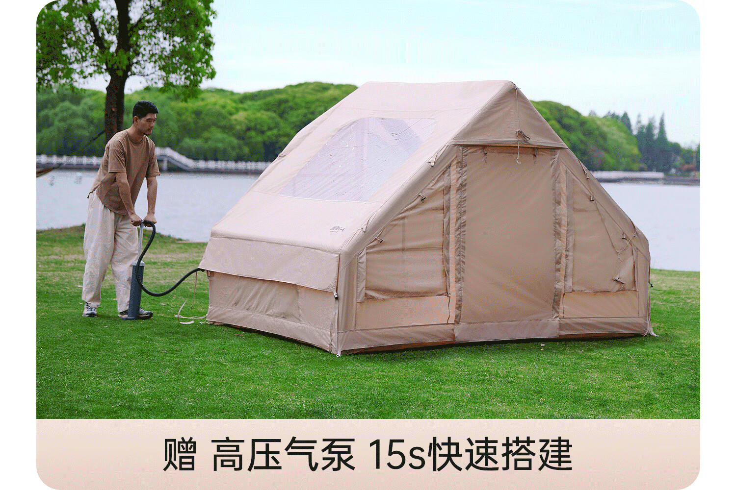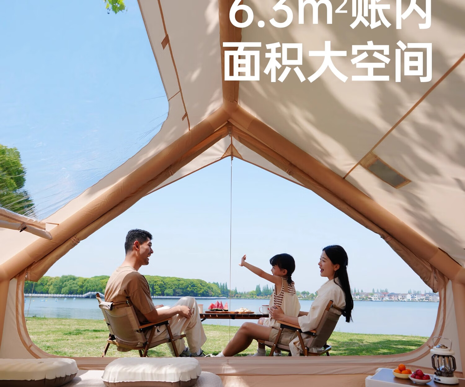 原始人充气棉布帐篷太适合户外露营!6.3平方超大空间,多人聚会、家庭露营都够用。牛津布加厚材质+天窗烟囱款设计,透气不闷热,还能适配炭火取暖。充气式搭建超便捷,不用费力气,防风防水性能靠谱,野外露营超安心。细节做工扎实,空间分区合理,收纳后不占地。户外爱好者、家庭出游必备,颜值与实用性兼具,露营装备闭眼冲!