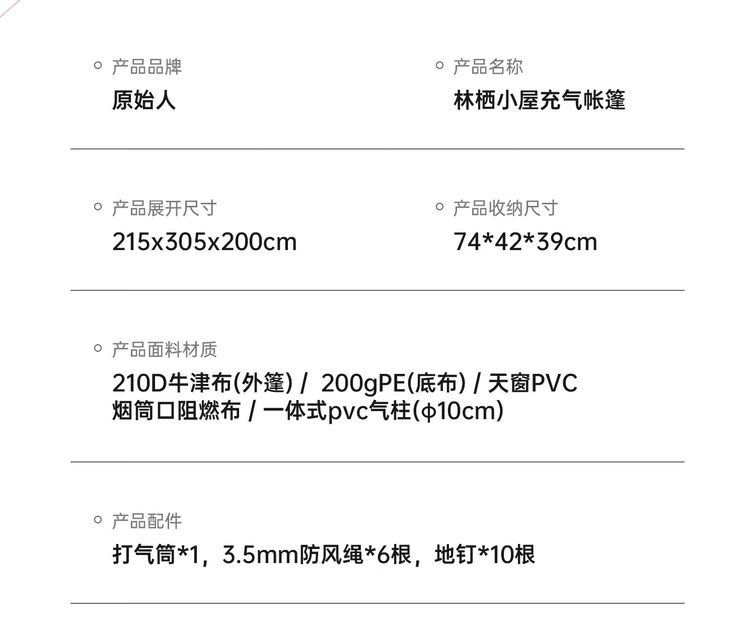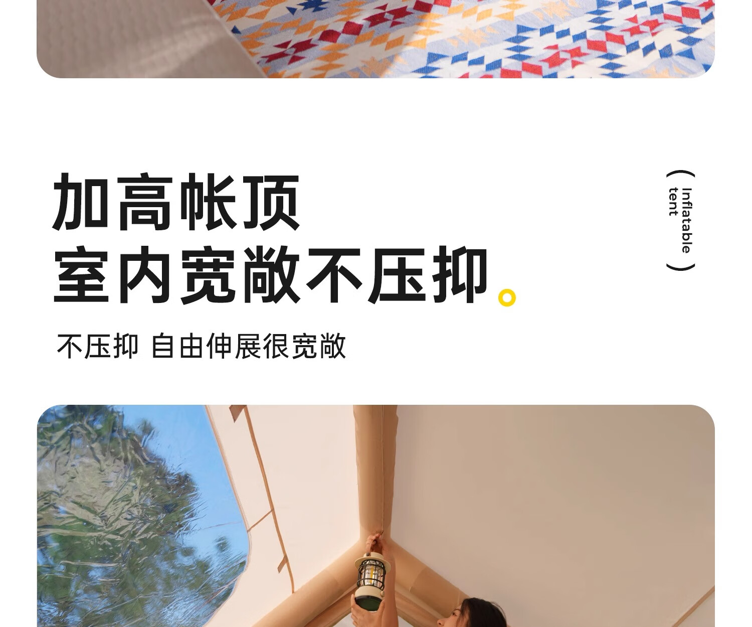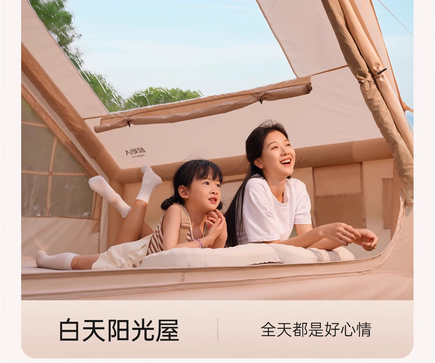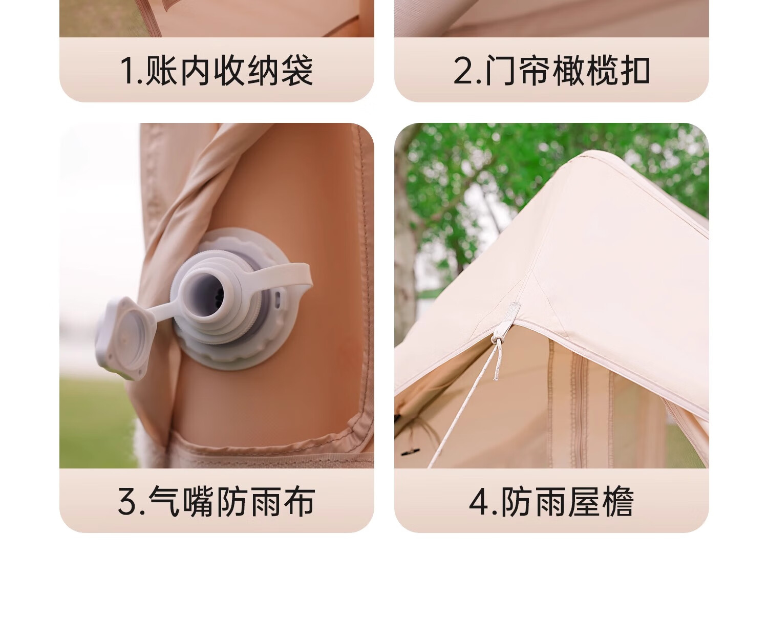 原始人充气棉布帐篷太适合户外露营!6.3平方超大空间,多人聚会、家庭露营都够用。牛津布加厚材质+天窗烟囱款设计,透气不闷热,还能适配炭火取暖。充气式搭建超便捷,不用费力气,防风防水性能靠谱,野外露营超安心。细节做工扎实,空间分区合理,收纳后不占地。户外爱好者、家庭出游必备,颜值与实用性兼具,露营装备闭眼冲!