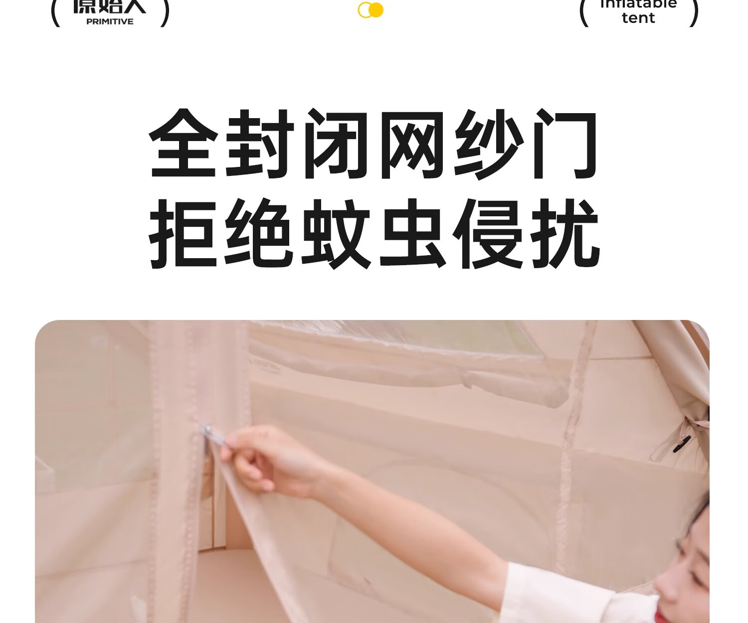 原始人 帐篷户外充气棉布帐篷 野外露营加厚多人超大空间露营装备 【加厚气垫】舒适露营全套+充气泵