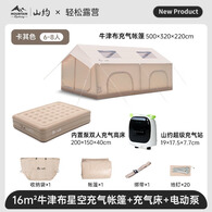 山约自动充气帐篷户外露营8平-16平星空防雨加厚野营过夜全套装备 牛津布16平+超级充气站+高床
