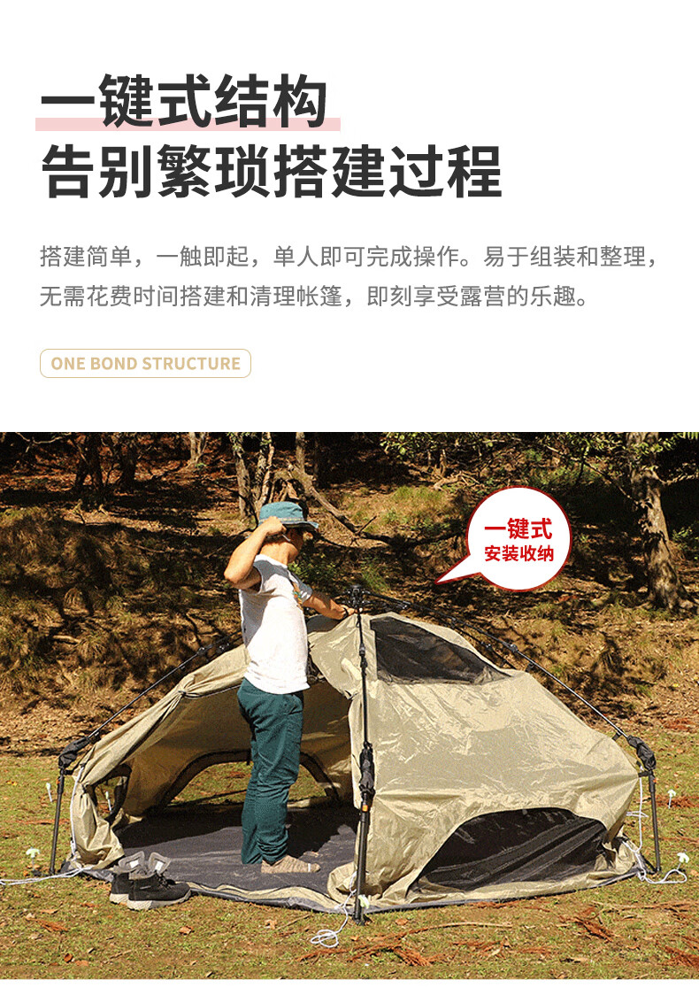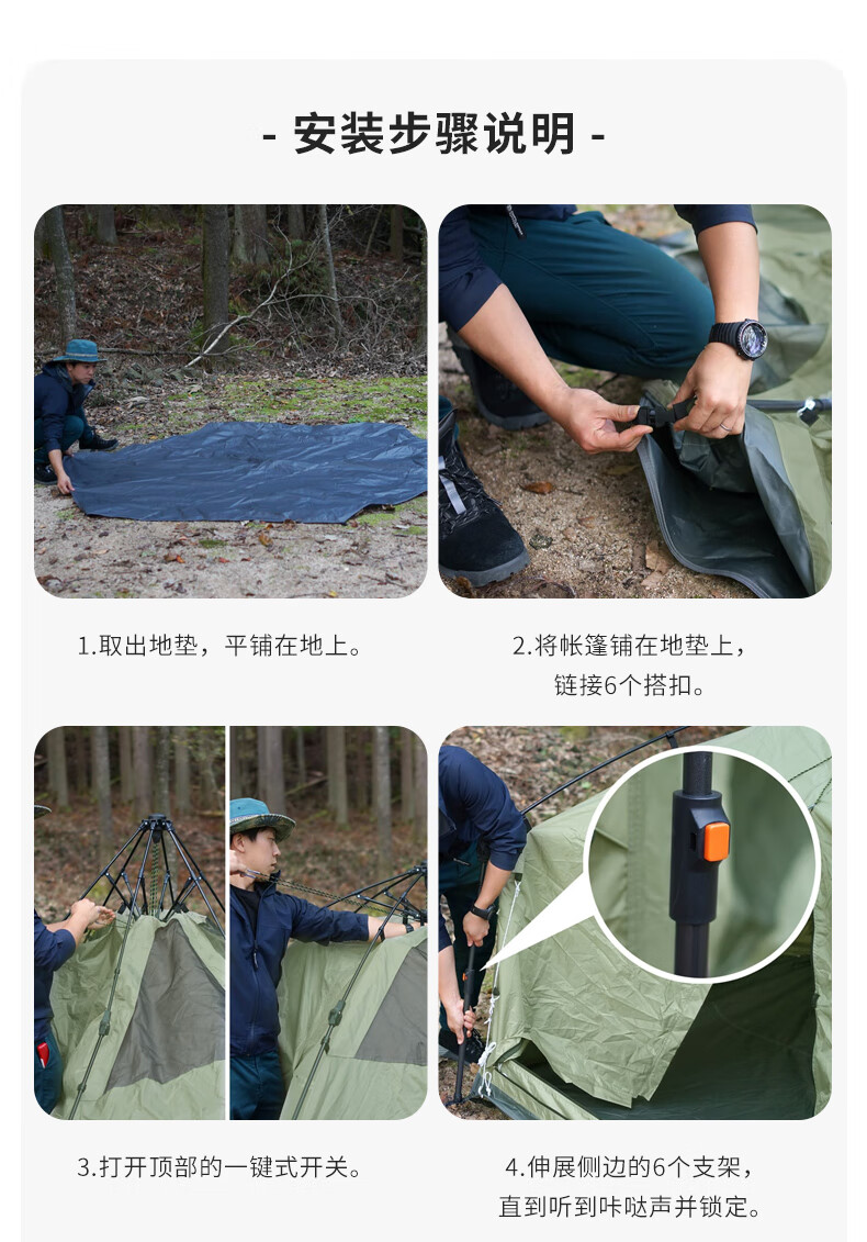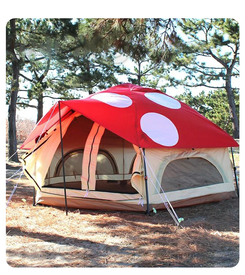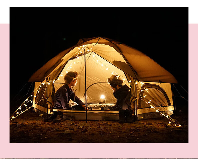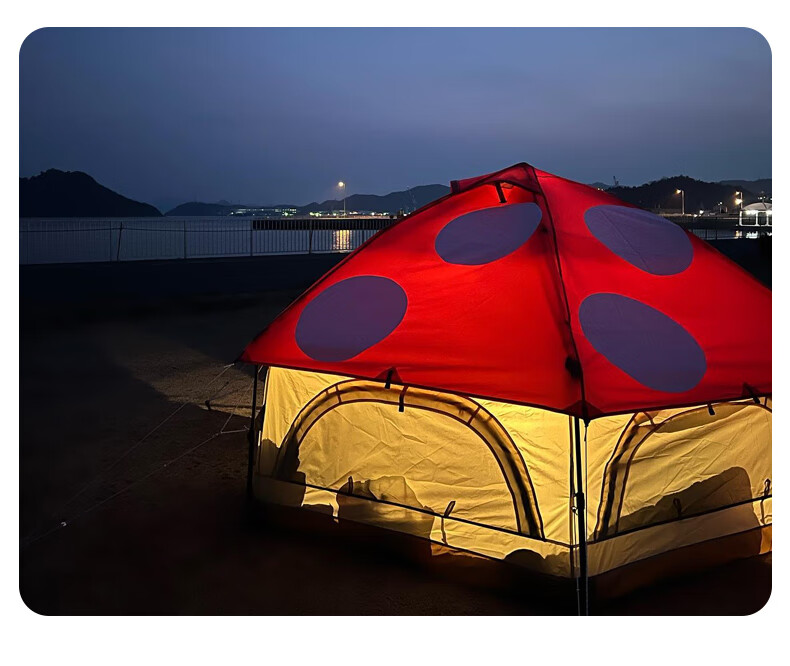 安装比较简单,平铺后拽一下顶部的绳子就行,收纳也比较方便。颜值很高,很吸引眼球。保暖性好,10度左右的天气,晚上过夜不冷。