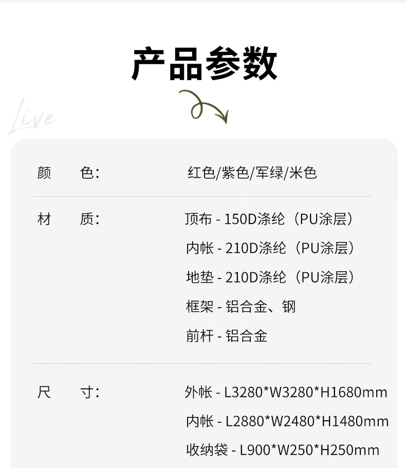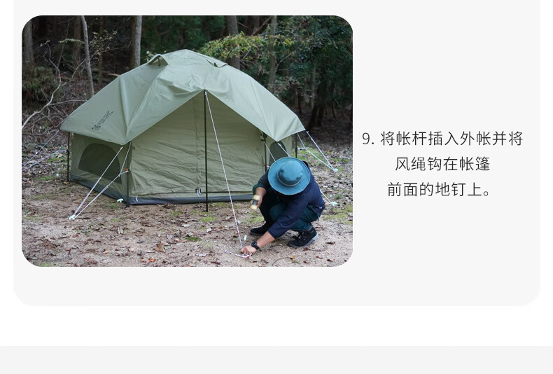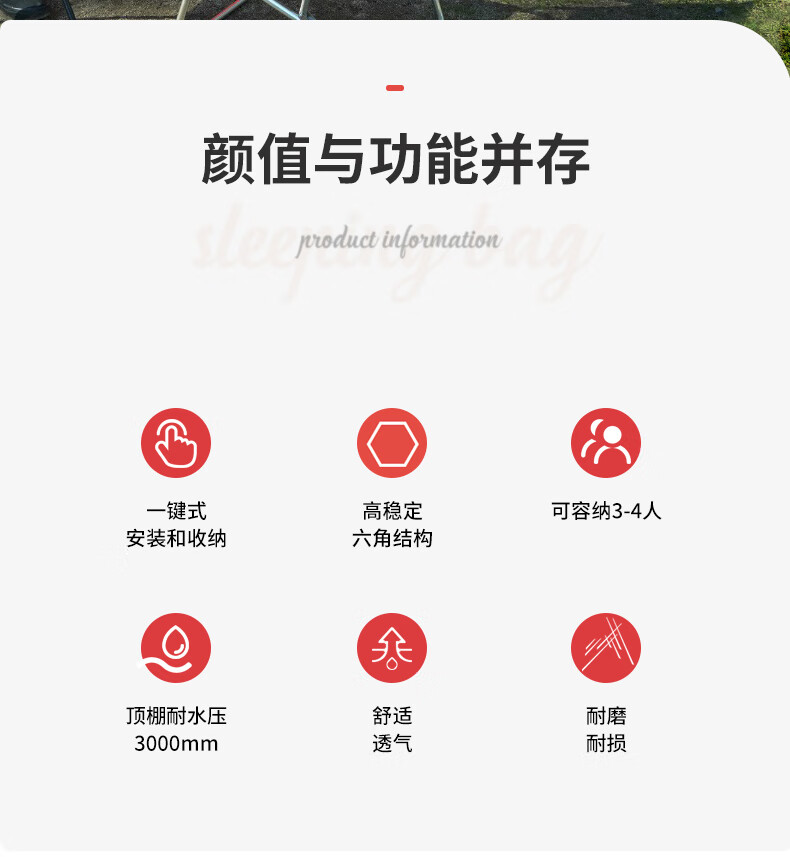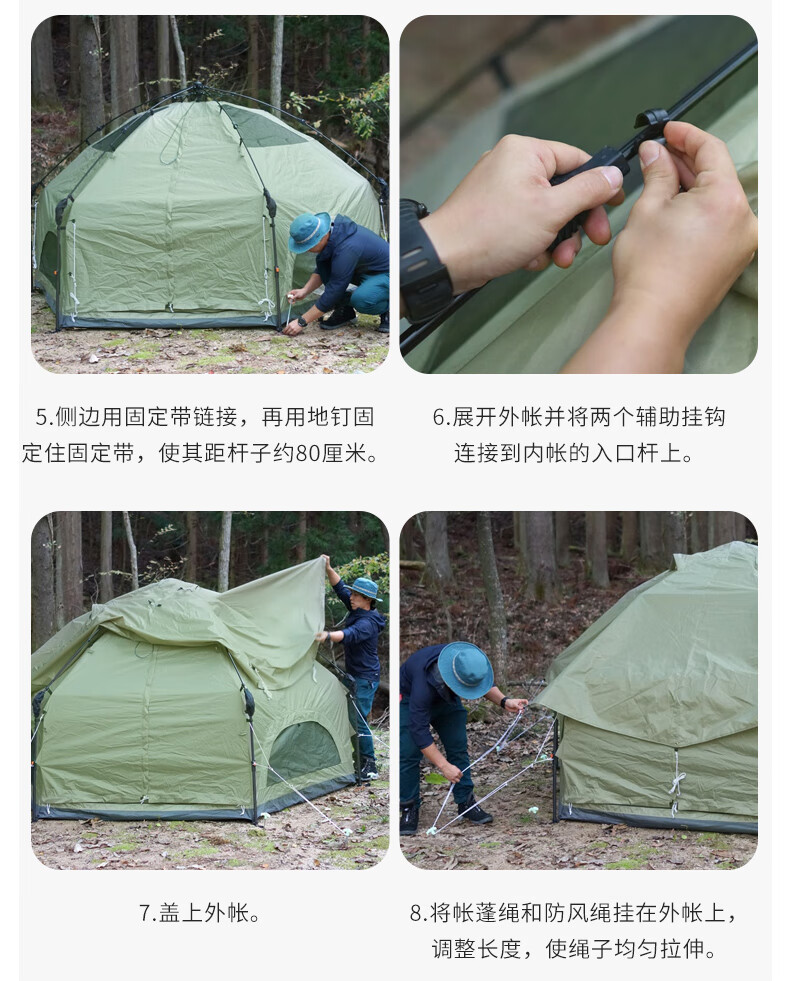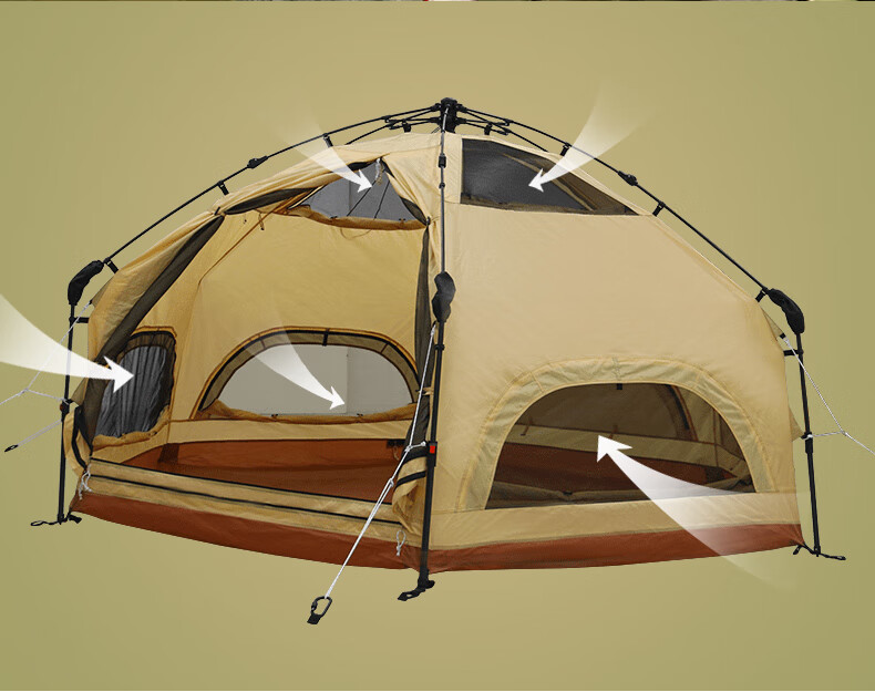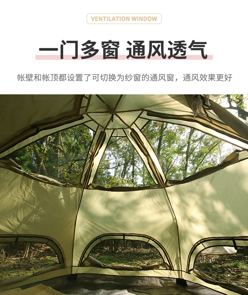 安装比较简单,平铺后拽一下顶部的绳子就行,收纳也比较方便。颜值很高,很吸引眼球。保暖性好,10度左右的天气,晚上过夜不冷。