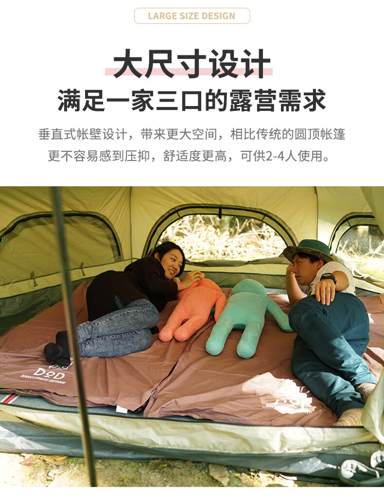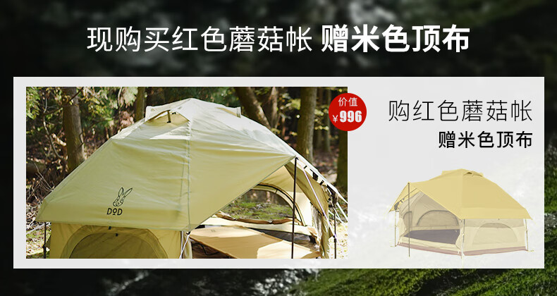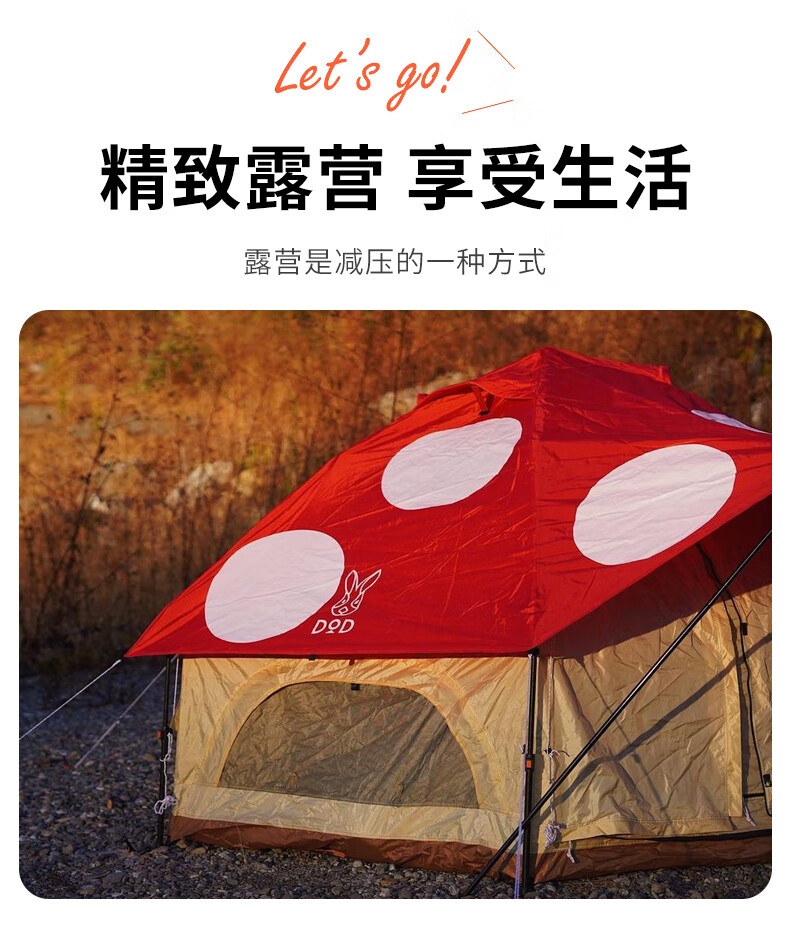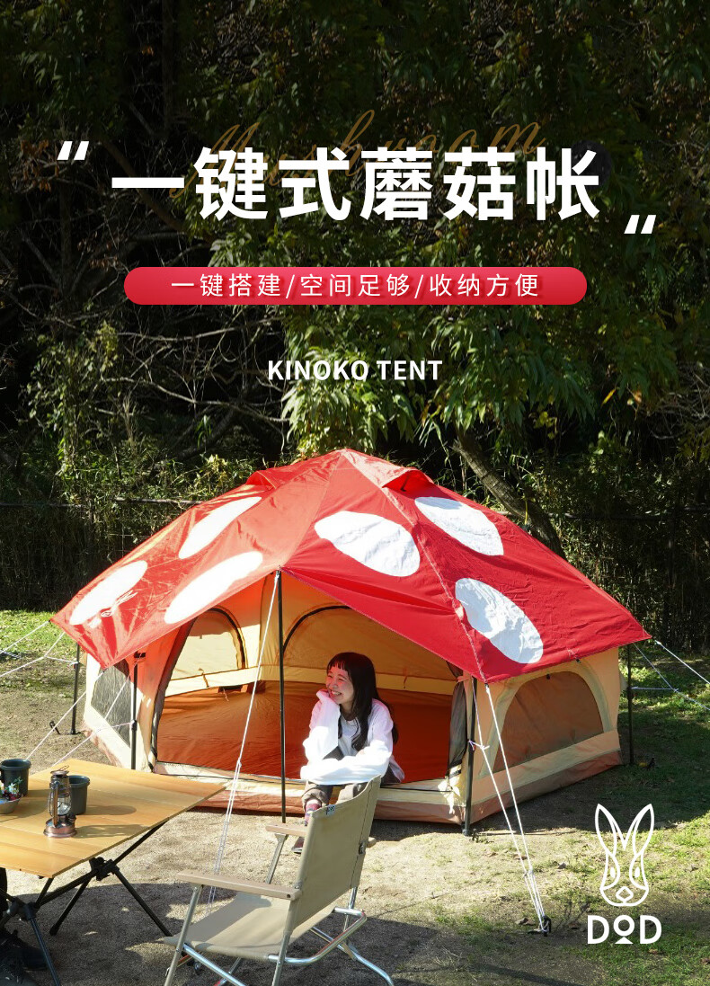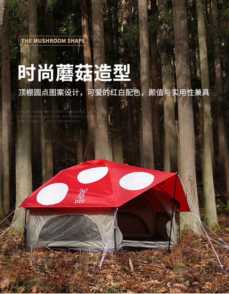 DOD 日本户外野营防雨防晒多人大号红蘑菇帐多色T4-610-RD露营亲子帐 红色T4-610-RD
