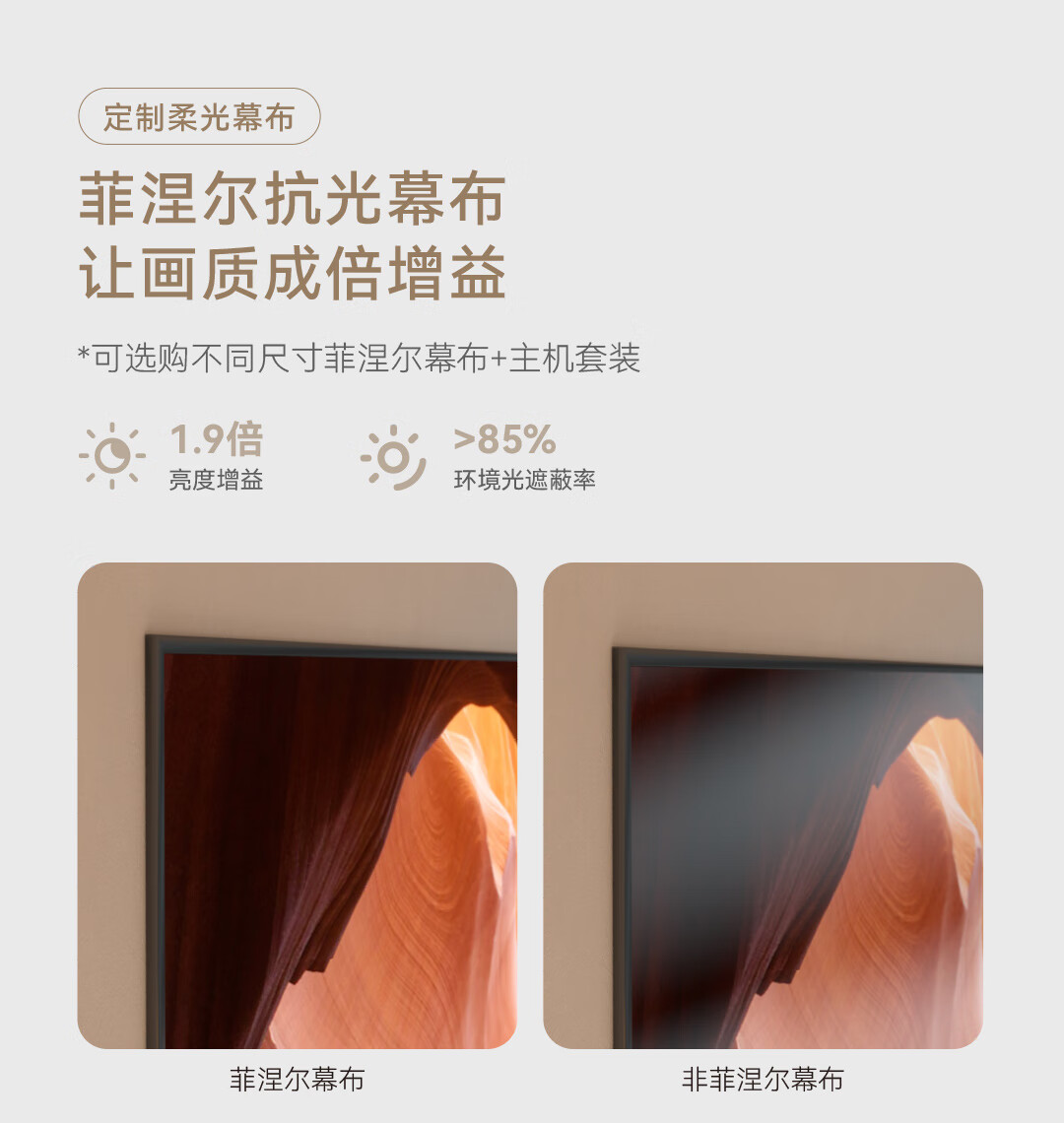 峰米 120英寸菲涅尔柔性抗光屏家用高清幕布超短焦投影仪激光电视抗光屏幕布家庭影院客厅璧挂贴墙 黑色
