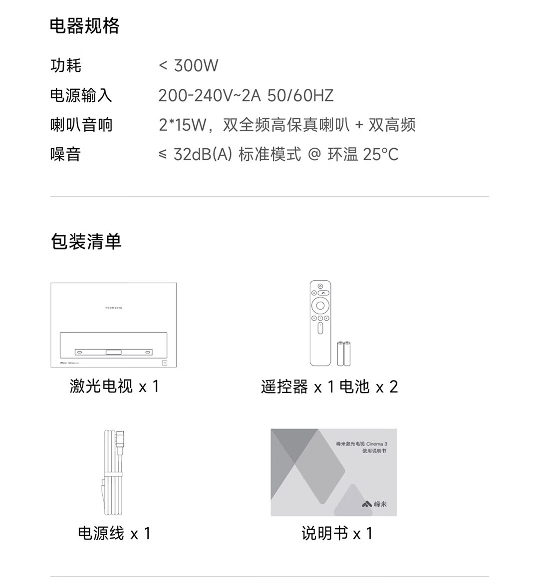 超短焦投影主机*1、遥控器*1、电池*1、电源线*1、擦布*1、说明书*1