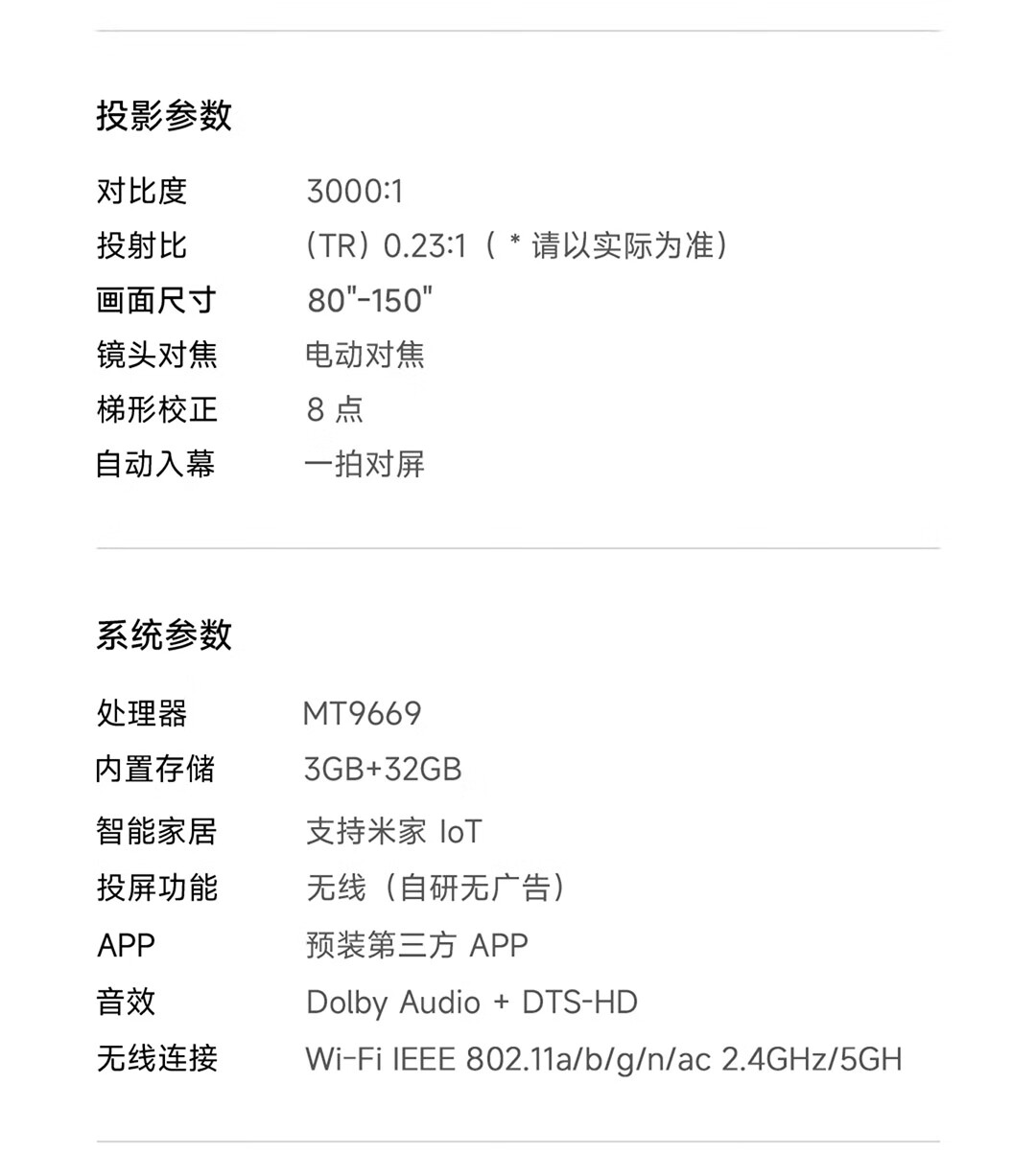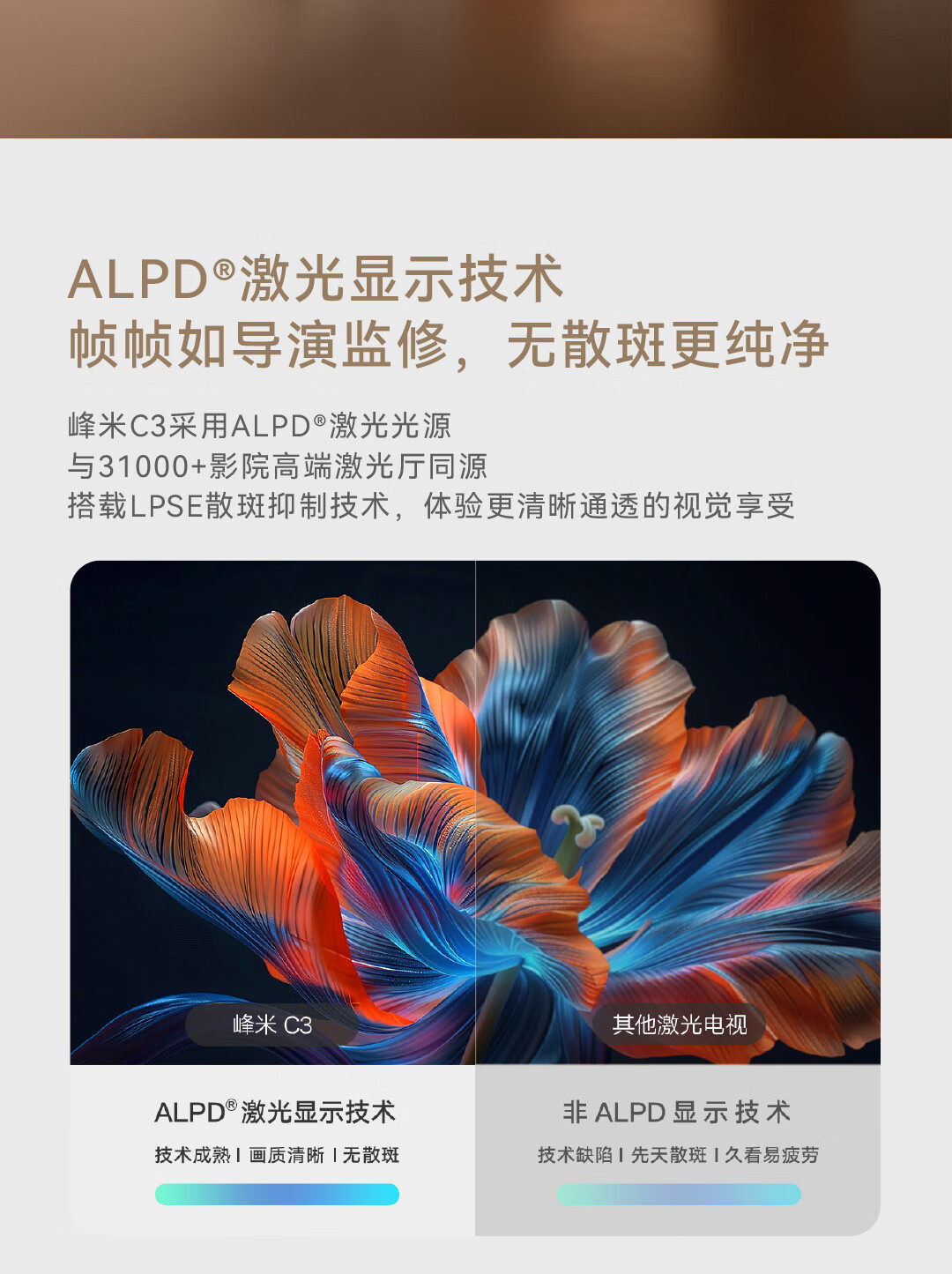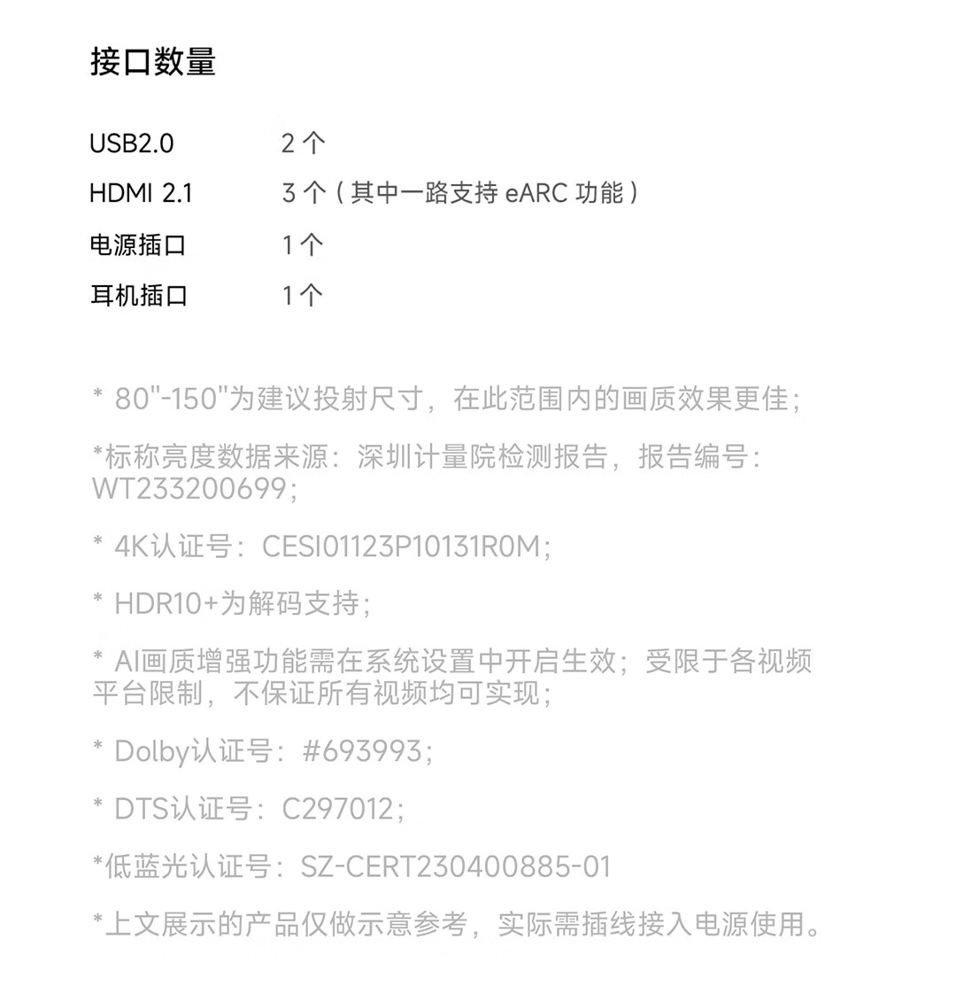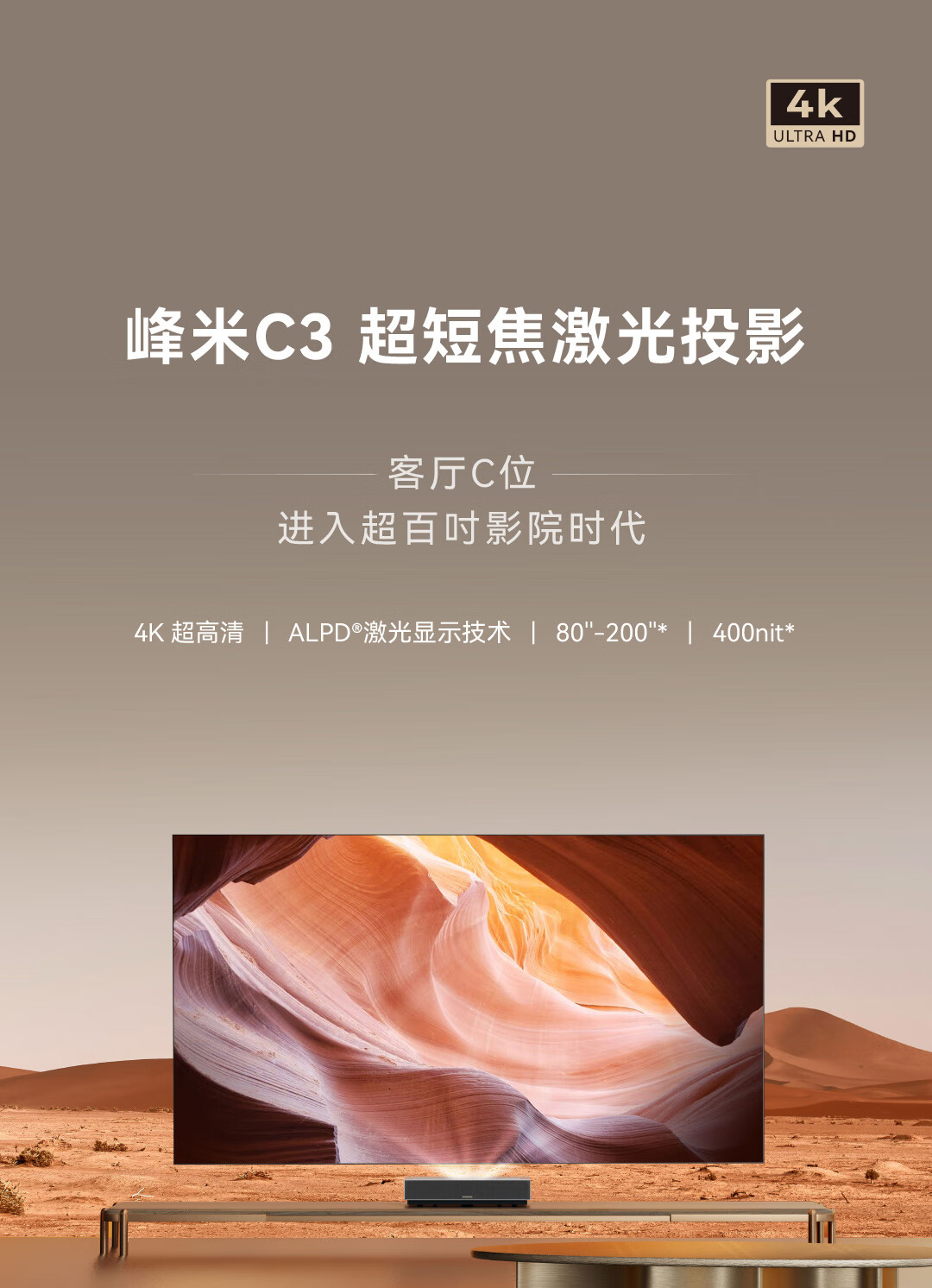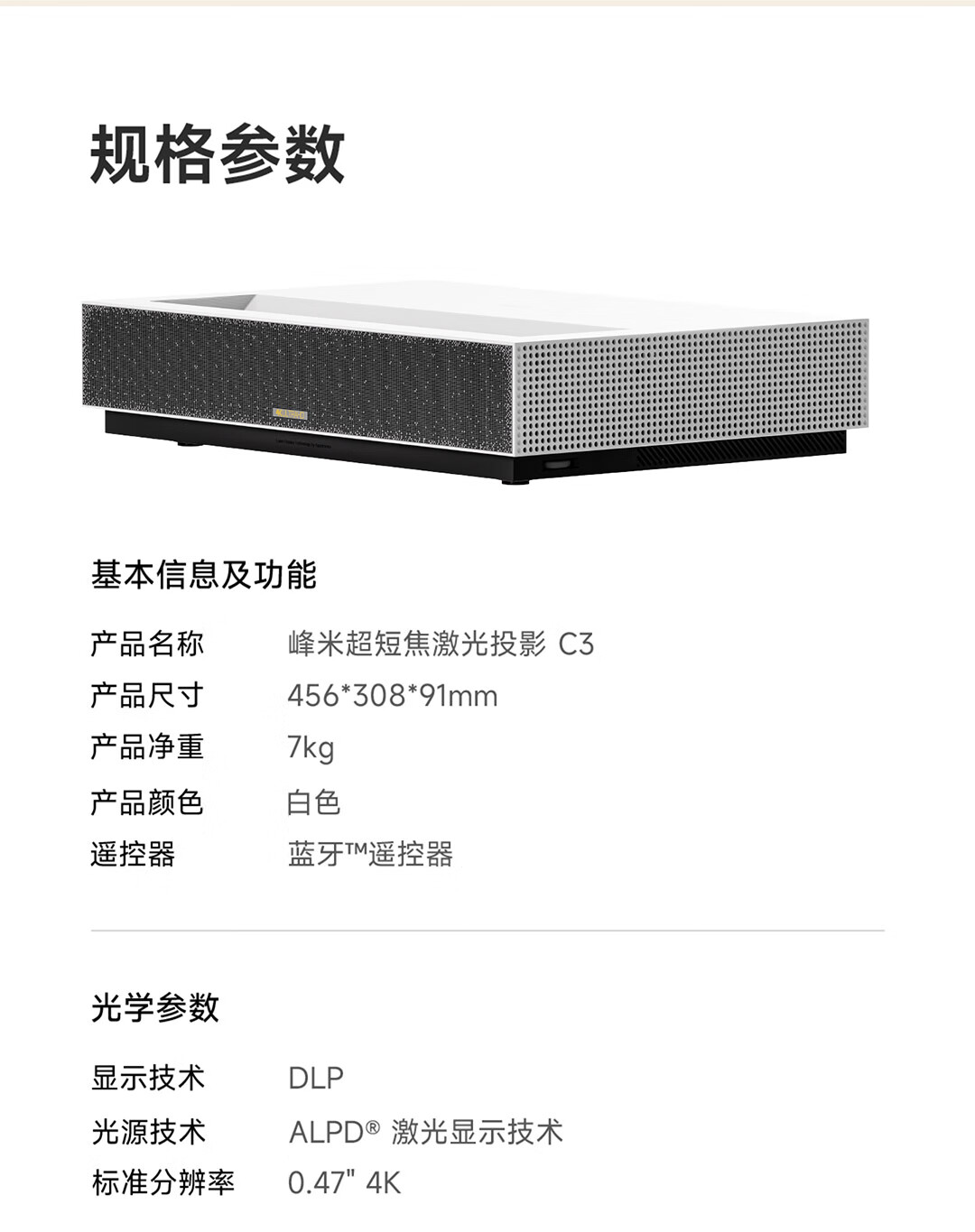 峰米超短焦激光投影仪C3 家用投影机 家庭影院(4K超高清 ALPD激光技术)以旧换新 白色