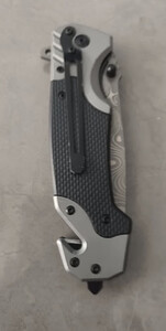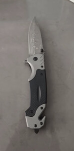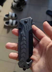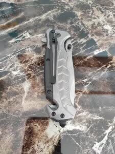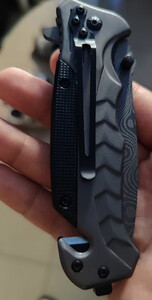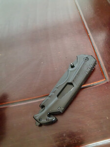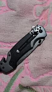 外观看着挺硬朗大气。手感沉甸甸的,手动打开后自动锁片,不至于伤了自己。闭合的时候轻轻拨动锁片即可。尾部带有破玻璃神器,关键时刻会用的上。很满意。