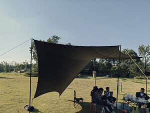 感觉这种双杆天幕不太稳定,4级风就吹倒了。。。 质量倒是没的说,幕布很厚,撑杆很结实。就是担心用久了风绳会不会被合金扣子磨断,希望能用久一些。。。