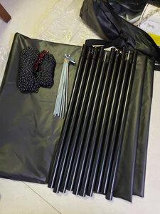 就连天幕包,风绳包,支杆包都做到了内涂银和外黑胶的处理,我只能说真是太值得一赞了。地钉略单薄当个备用吧,如此好的天幕用料,毕竟整体成本在这,比较脆弱的地钉可以外购30+长度高强度地钉,风绳也不错粗度可以。