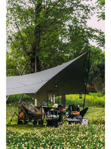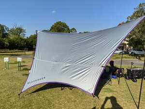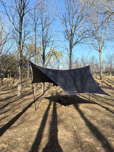 Black Deer 云荫黑胶涂银天幕 黑鹿至今在我心中有浓厚的滤镜,作为国产品牌,黑鹿在原创的路上,算是不忘初心。坦率说,这款天幕很能打,黑胶遮阴效果不错,涂银合适冬季使用,蝴蝶造型线条感优雅,黑银为主,点缀紫色,和黑鹿的星期天充气帐一度是我当时的期待的组合产品。但是在当时700+的售价下,原厂配置的天幕杆实在是不忍直视,高低得叹息一声细狗,且地钉之细看齐风绳,这让我到现在都有点耿耿于怀,幽怨溢价下的错付,就当支持黑鹿了。