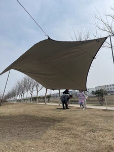 不亏是天幕届明星产品,天花板级别,天幕超级厚实,黑胶很有质感,尺寸够十个人用,两面涂层,夏天用黑胶,冬天用涂银,2.5天幕杆完全够高,1.8米身高不用低头,