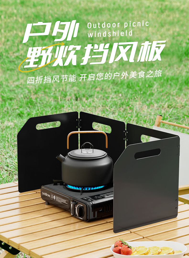 蝶烤香户外炉具挡风板加厚折叠卡式炉风板炉头灶具防风罩气炉风罩 三折挡风板