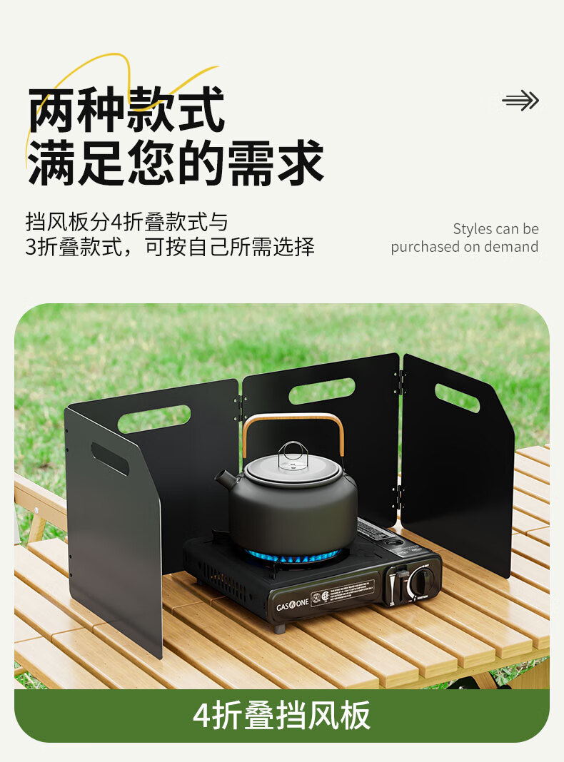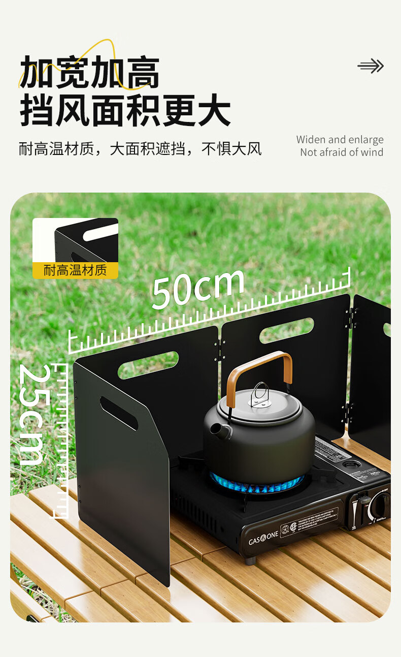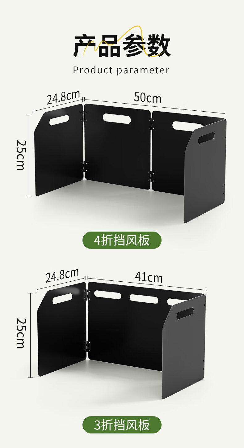 拓村卡式炉挡风板防风围挡户外炉具挡风板防风罩卡磁炉防风板通用折叠 绿色-四折挡风板【送收纳袋】