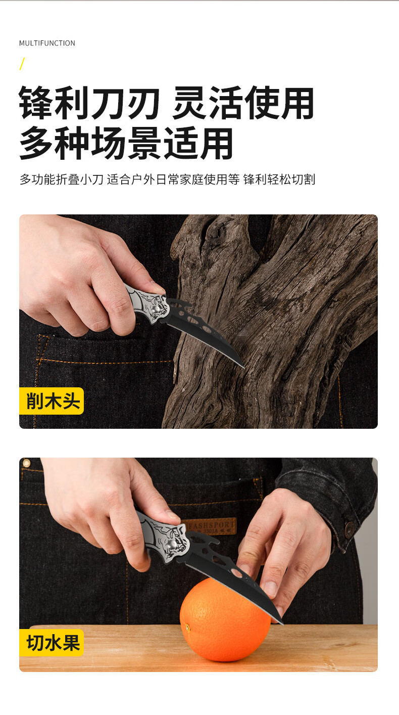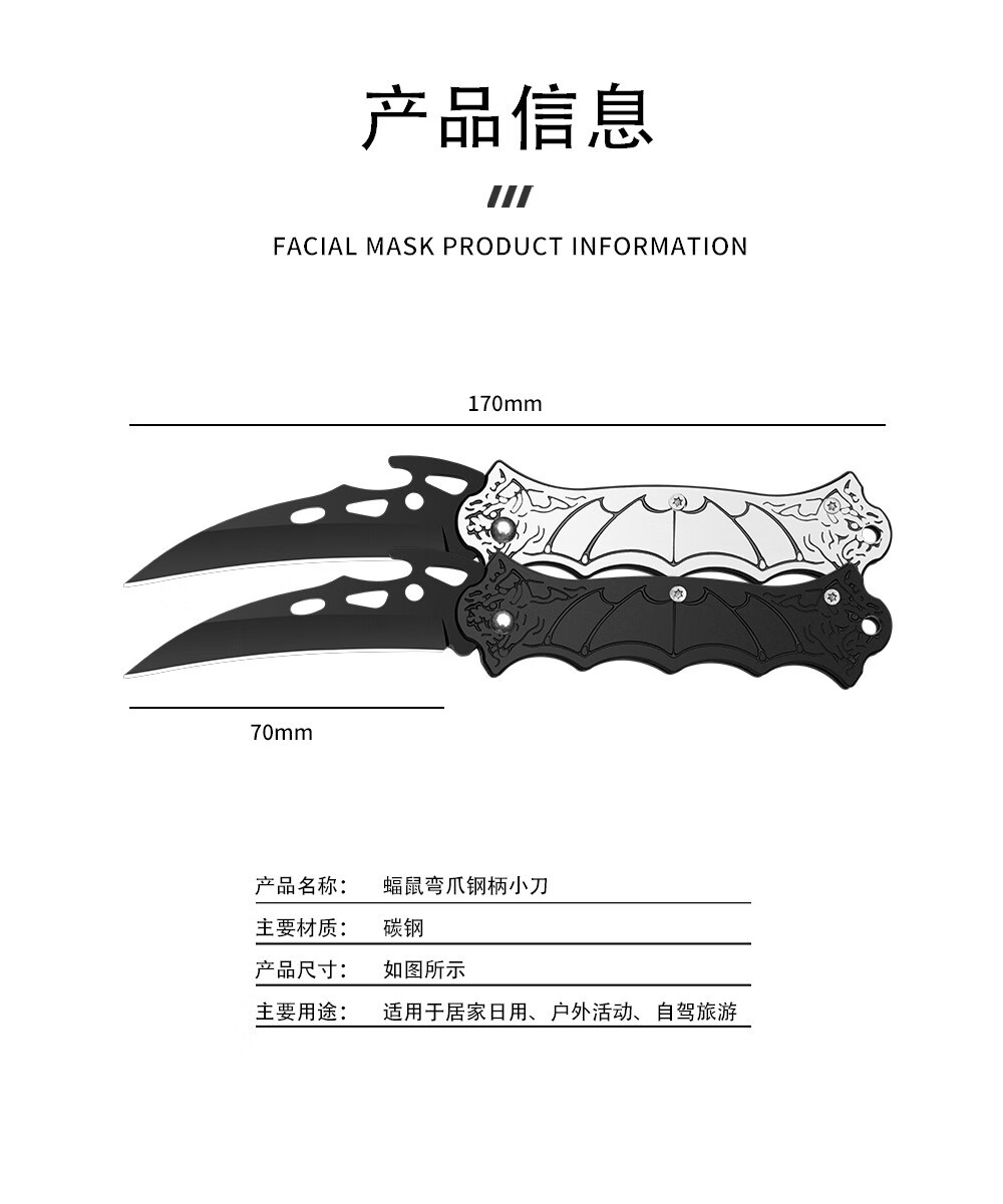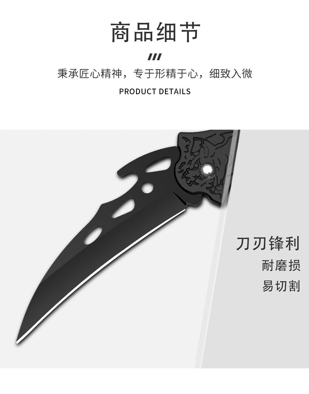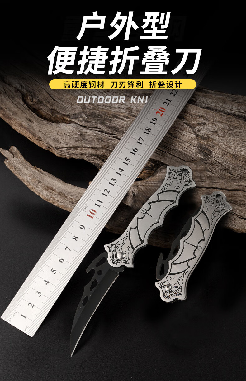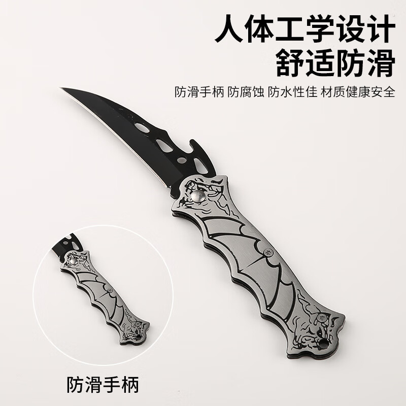 CJB户外多功能折叠小刀随身防身小刀拆箱刀家用不锈钢锋利水果刀 蝙蝠-黑色 173mm*24mm*5mm