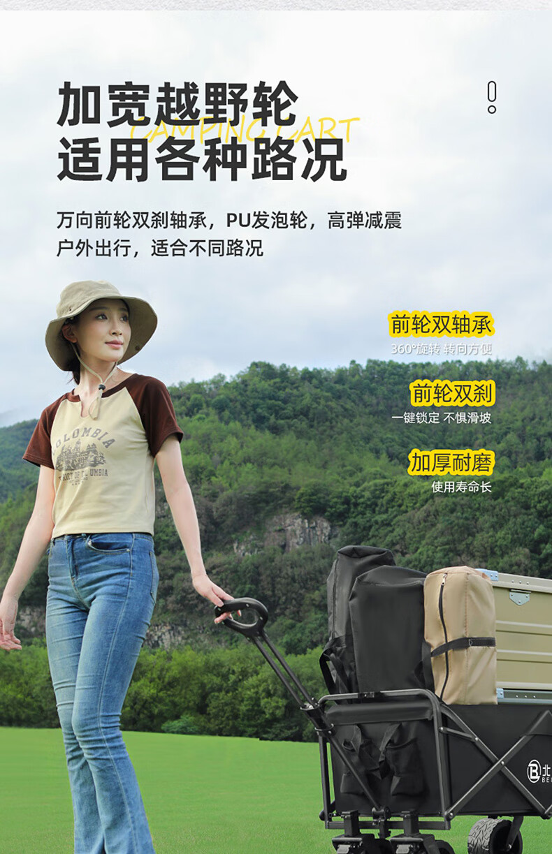 北岳露营推车可折叠户外手推野餐车营地拖车拉杆小拉车桌板烧烤野营车 煤炭黑【轻盈款】5寸万向轮