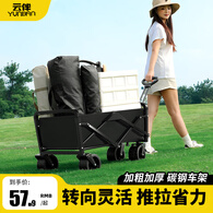 云伴(YUNBAN)营地车手推车户外露营车便携式可折叠大容量拉杆小拉车 5寸黑色【静音轮】-无盖板