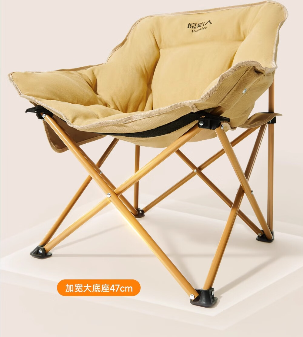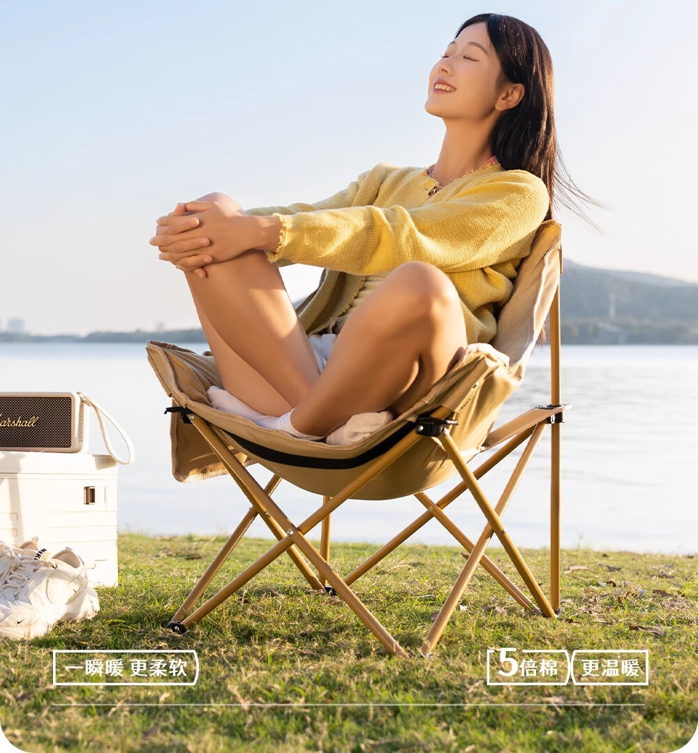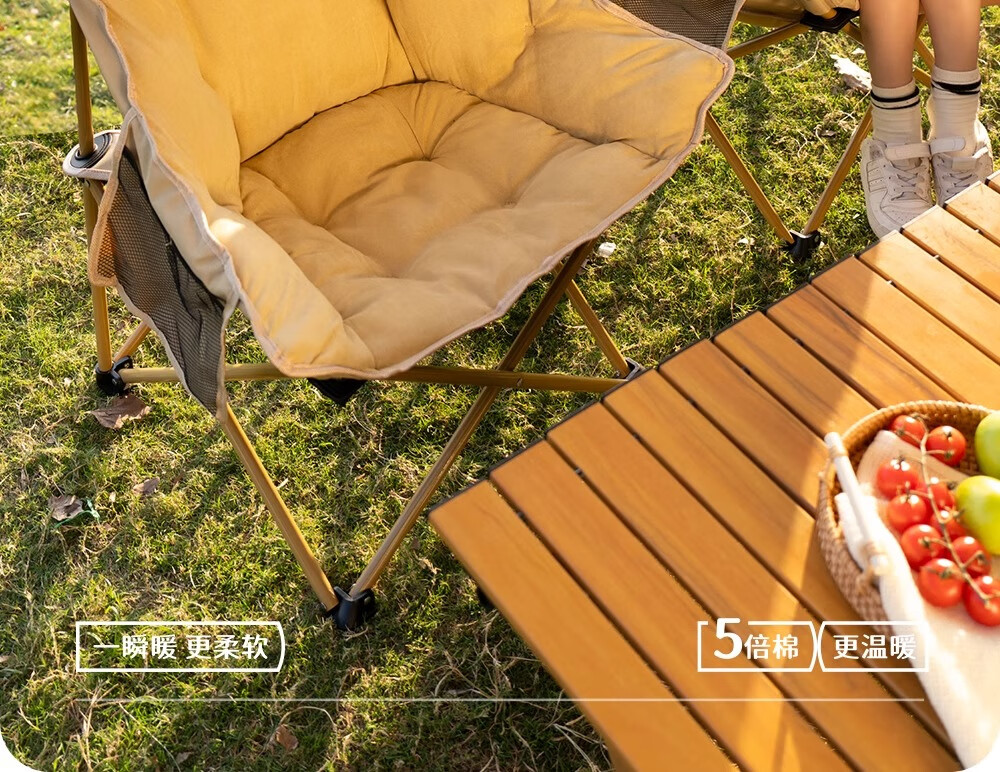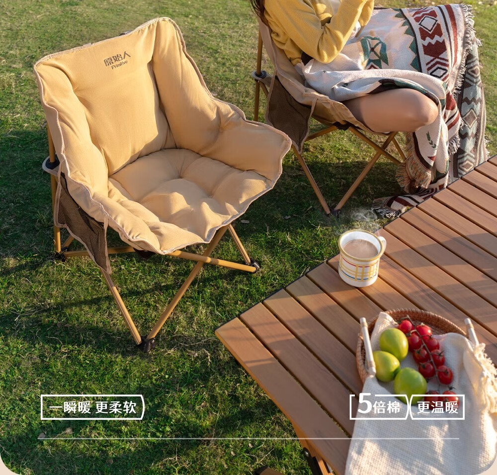 原始人月亮椅户外折叠椅子便携钓鱼凳野外露营野餐躺椅野营沙滩椅 90CM木色蛋卷桌+绒面款月亮椅*2