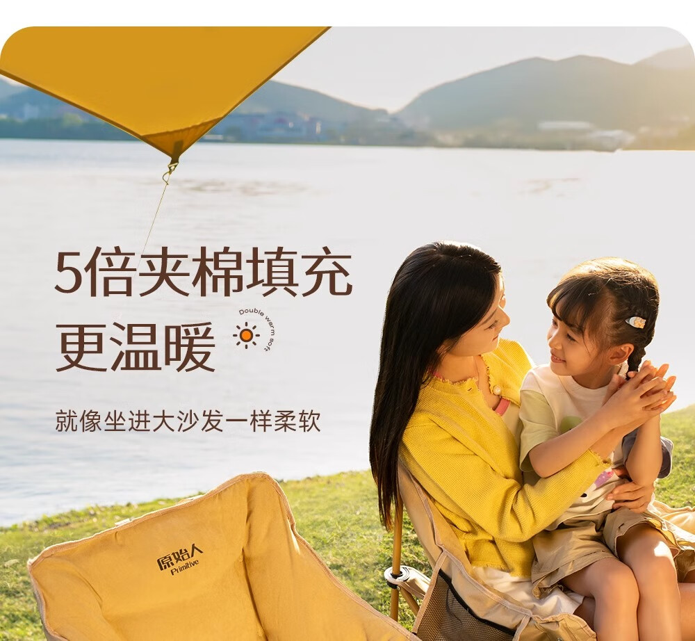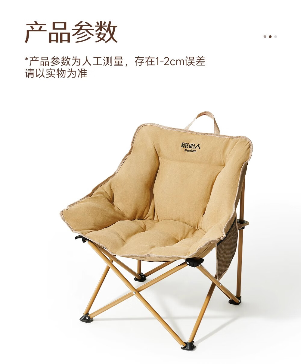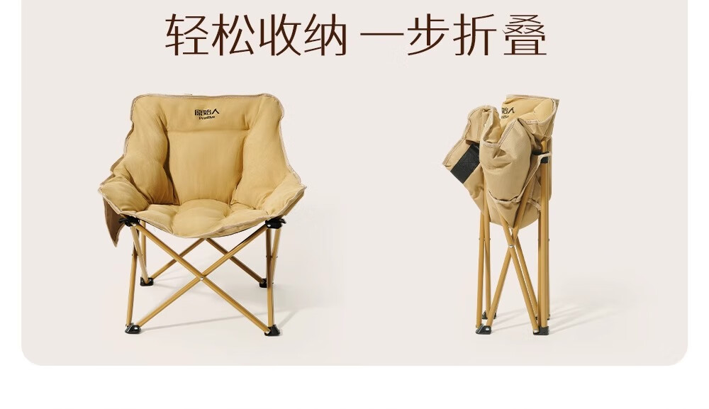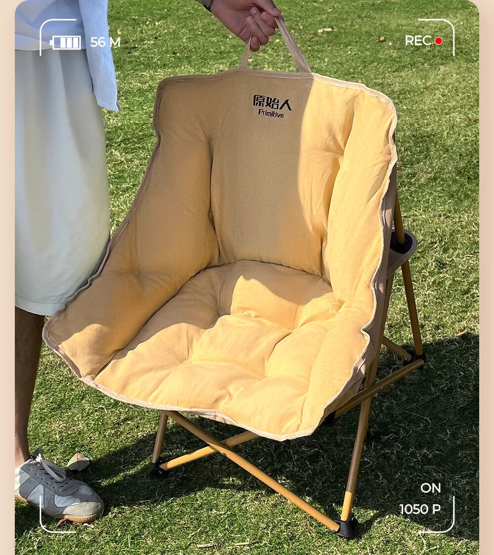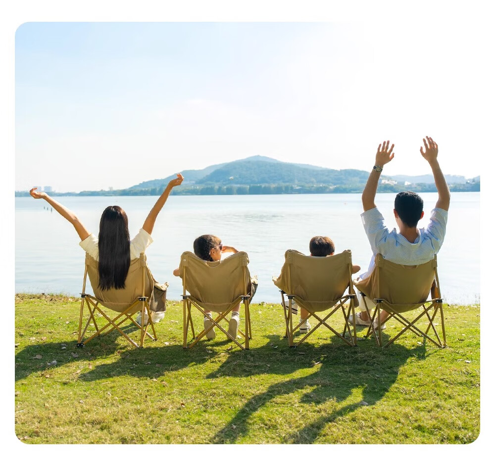 原始人月亮椅户外折叠椅子便携钓鱼凳野外露营野餐躺椅野营沙滩椅 90CM木色蛋卷桌+绒面款月亮椅*2