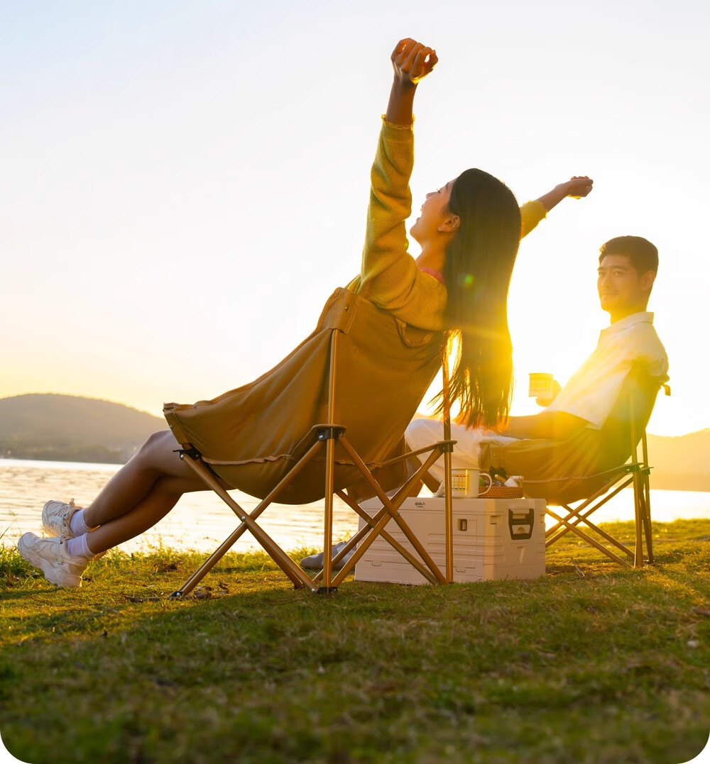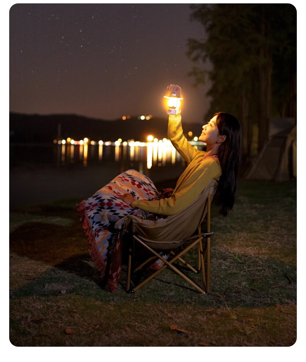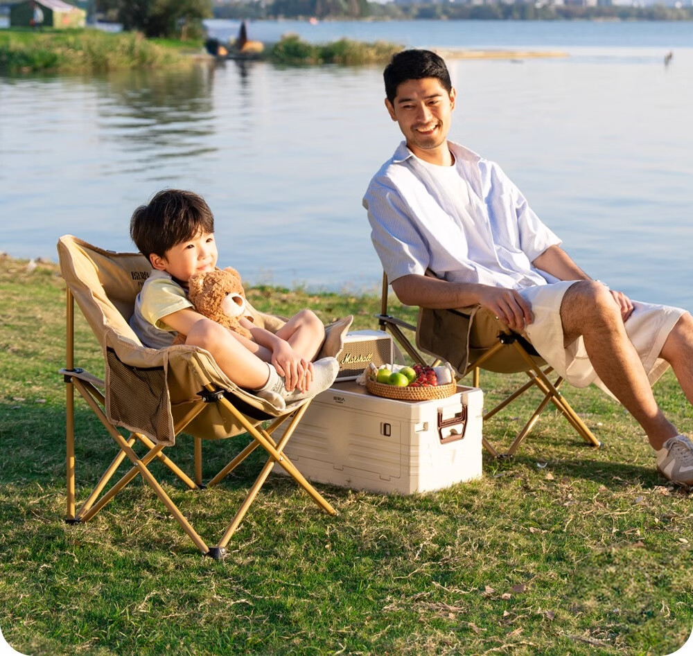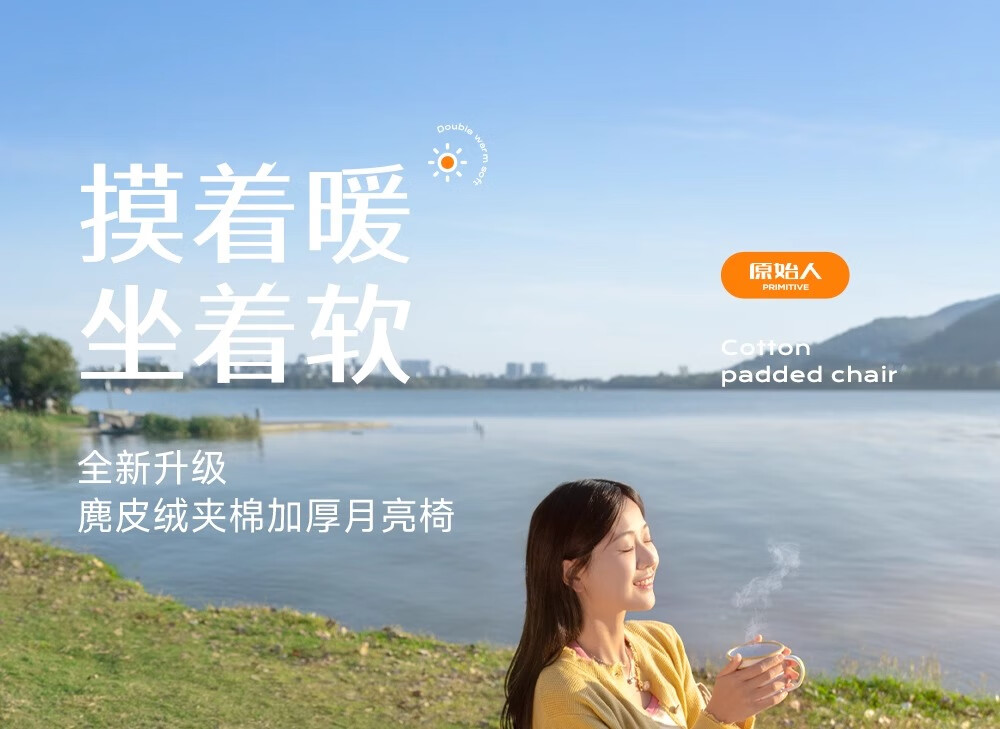 原始人月亮椅户外折叠椅子便携钓鱼凳野外露营野餐躺椅野营沙滩椅 90CM木色蛋卷桌+绒面款月亮椅*2