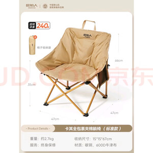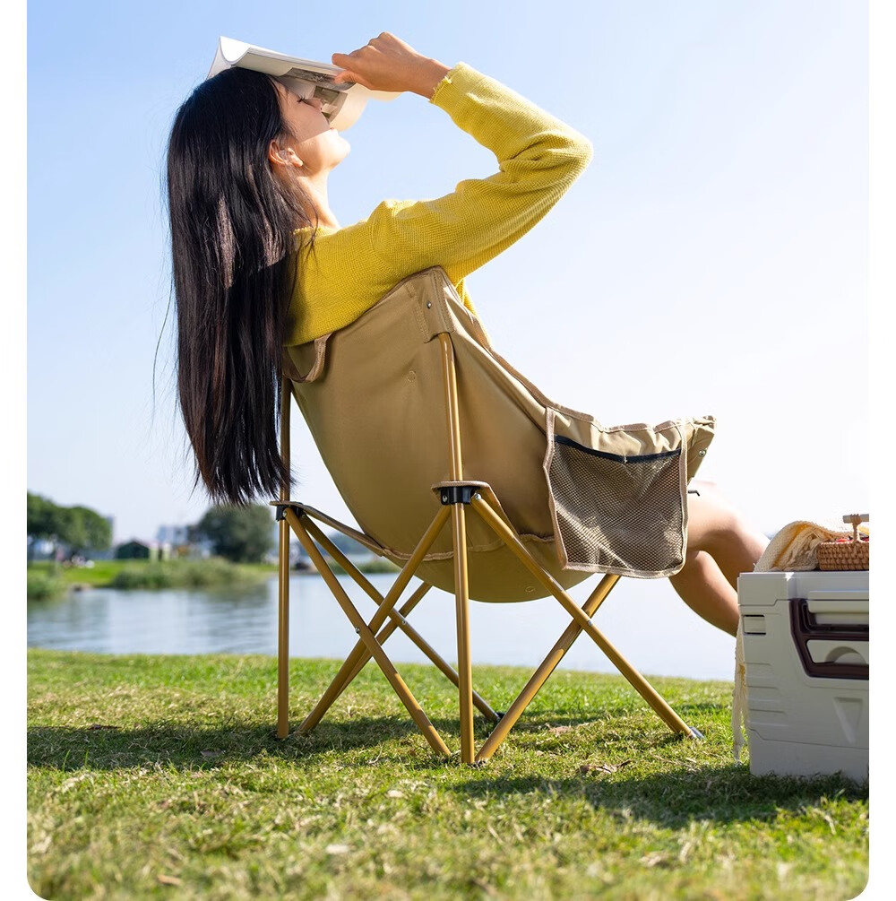 Naturehike挪客 户外折叠躺椅 午休轻便沙滩休闲椅露营钓鱼写生铝合金靠背椅 卡其色