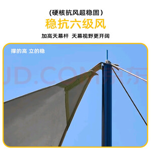 天幕质量很好,做工好。仔细看了承重的几个部位缝线结实,支撑杆有重量看着也耐用。 包装很好,没有破损,物流速度也很快,很好。商品做工精细,颜值高,很结实,很防晒。