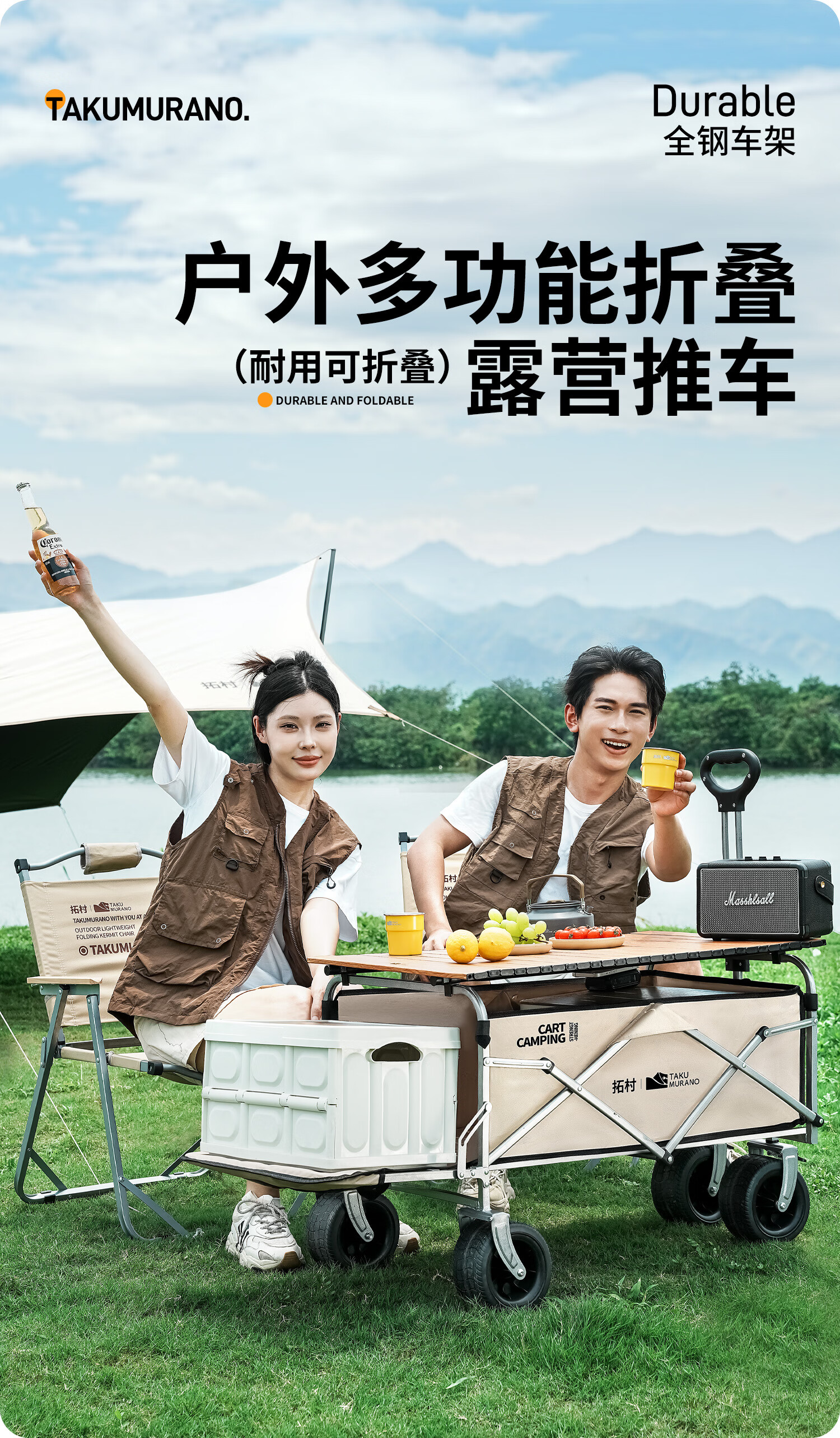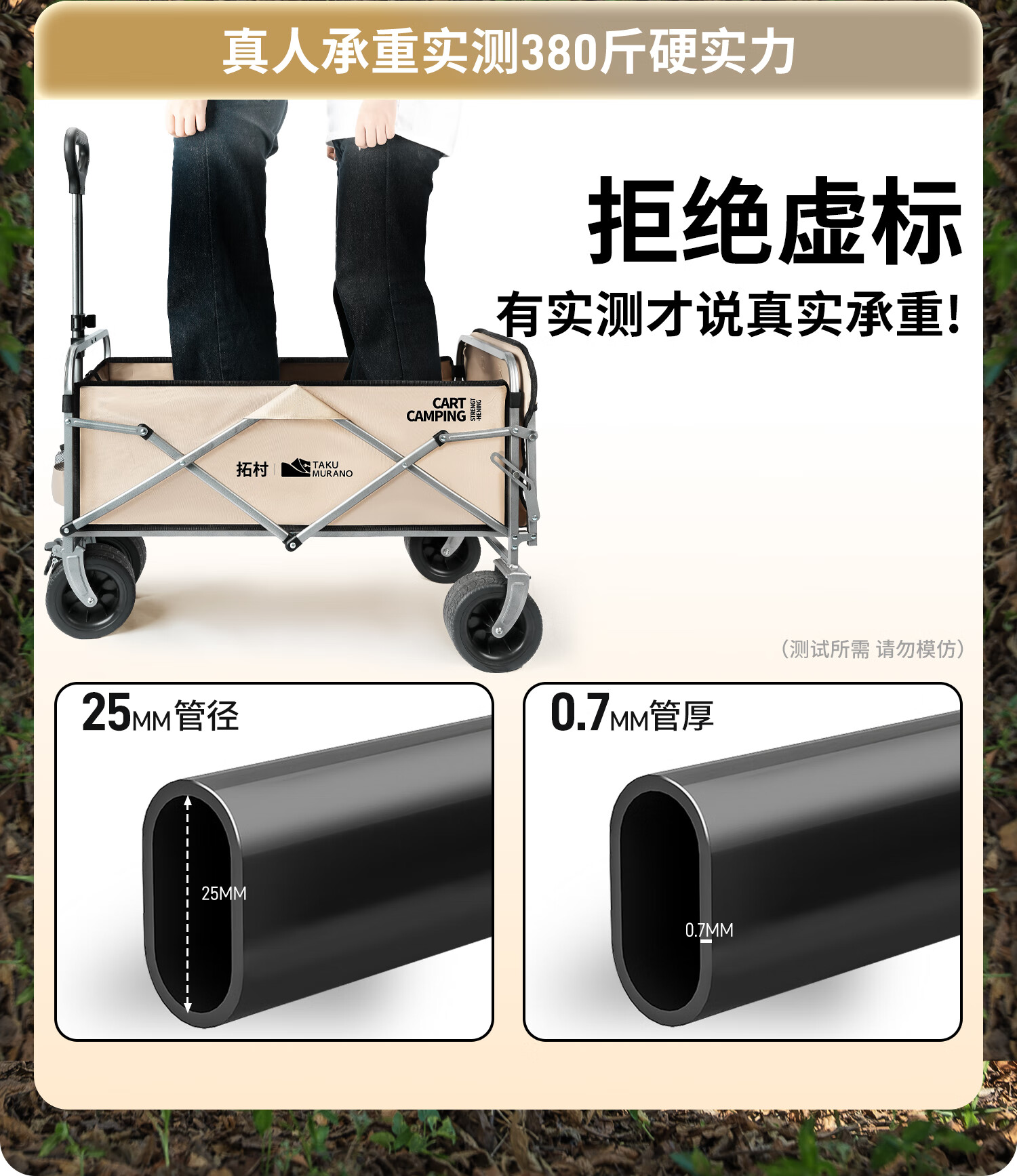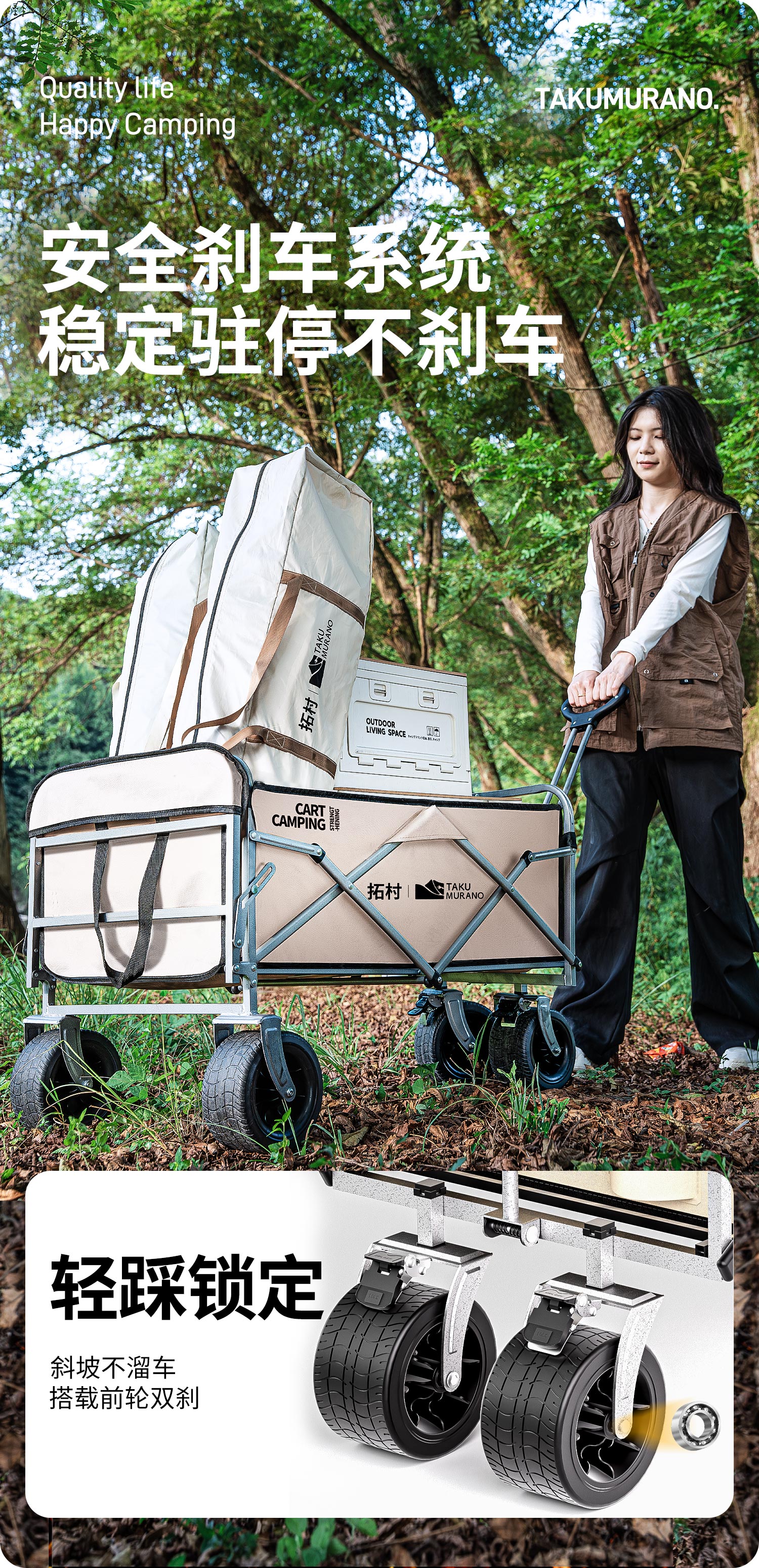 入的拓村这款峦行坦克越野轮露营车,真是把“实用”和“省心”焊在身上了!16cm的坦克越野轮太能打,上次带娃去郊外露营,不管是坑洼石子路还是松软草地,推起来都稳当不颠簸,娃躺在里面看风景超开心,完全不用担心颠醒。全钢车架承重力够强,一家老小的帐篷、野餐垫、零食箱全塞进去,也没见变形。用完折叠起来体积特别小,后备箱随便塞,平时买菜拉快递也能用,简直是户外和日常的“全能帮手”,后悔没早点买!