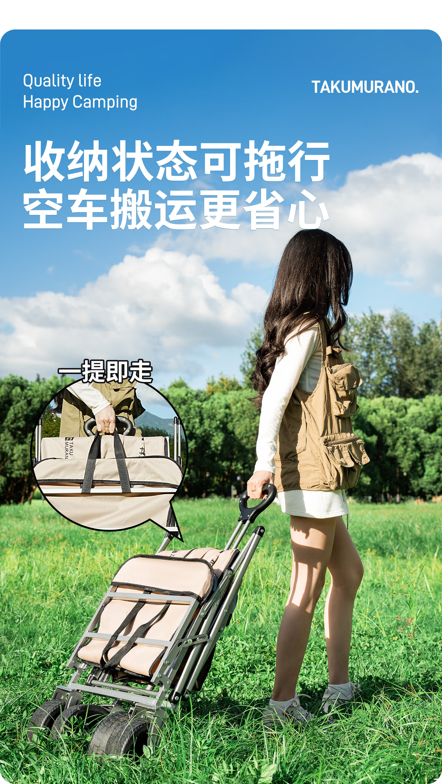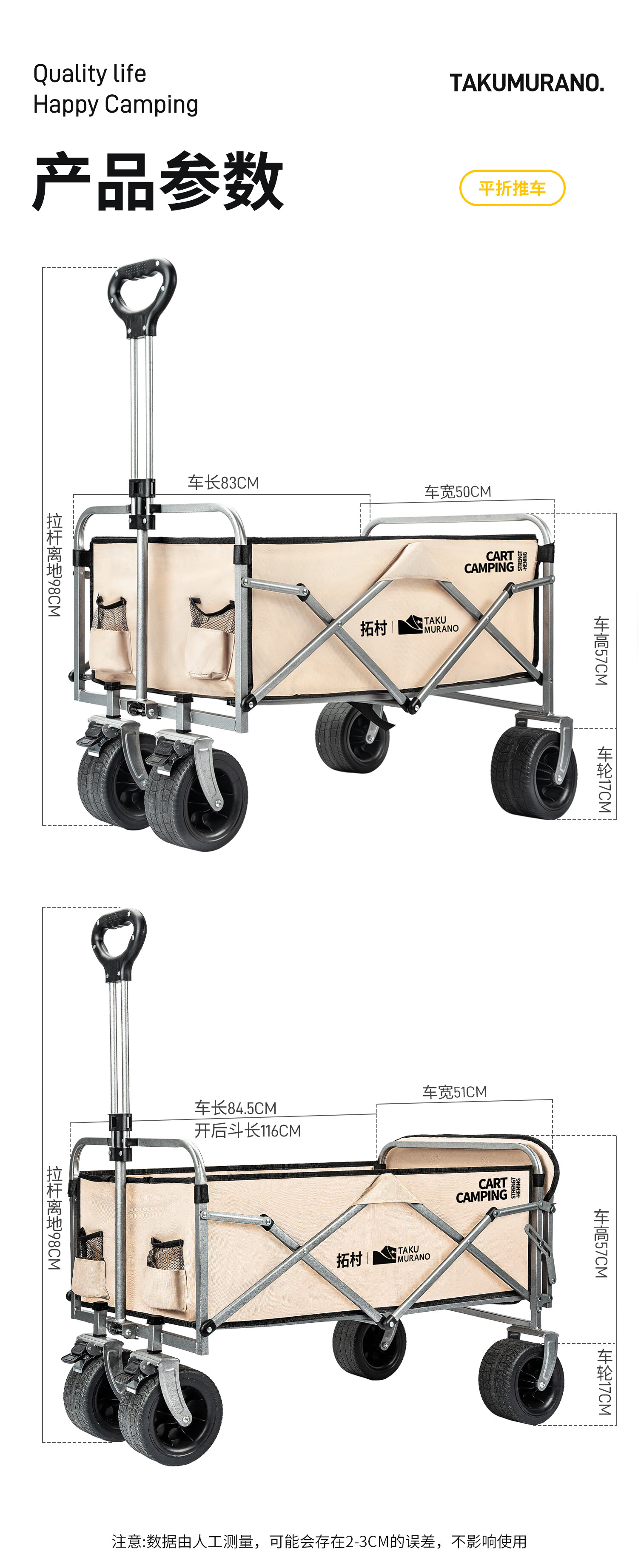拓村露营车儿童可躺户外推车野餐车露营装备折叠露营推车营地车买菜车 峦行坦克越野轮