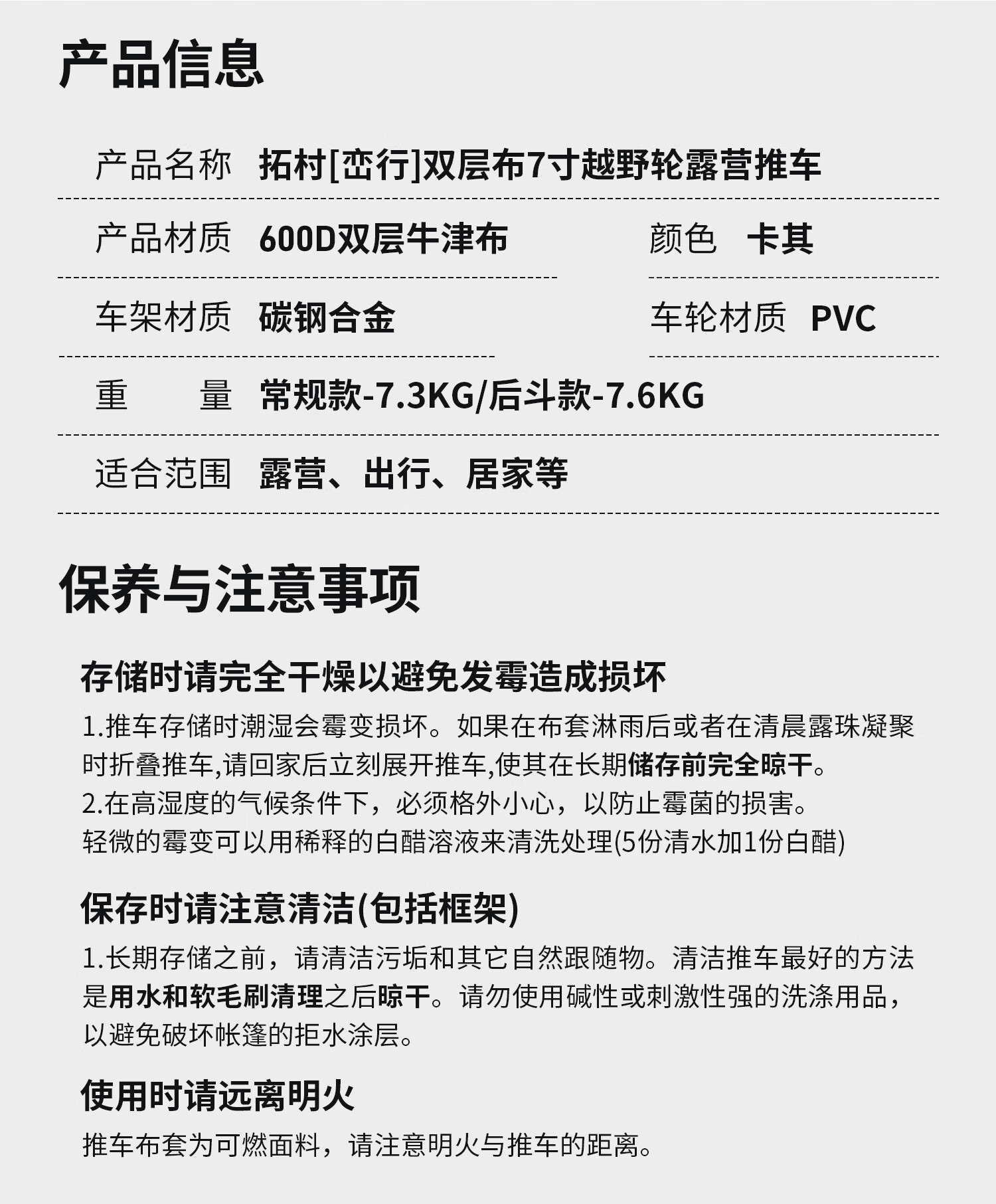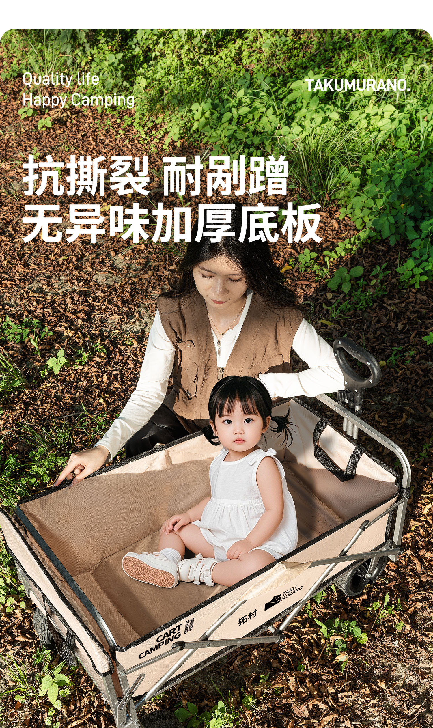 这款拓村露营车真的太好用了!峦行坦克越野轮设计,在各种地形上都能轻松行驶,不管是草地、沙地还是崎岖的山路,都毫无压力,带着孩子去户外露营,再也不用担心不好推车了。而且它的容量超大,能装下孩子的小毯子、玩具、水杯等各种物品,还可以让孩子躺在里面休息,非常方便。车子折叠起来不占空间,收纳和携带都很容易,平时放在家里或者后备箱都不碍事。做工也很精细,车架坚固,布料厚实耐磨,一看就很耐用,强烈推荐给有孩子的家庭!