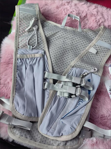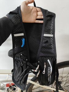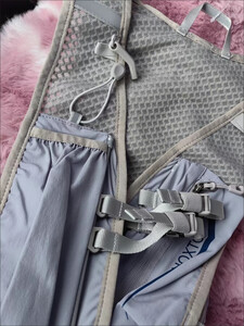 这款包包超级实用,超轻超值,参加越野跑已经用过了。可以放置1.5L的水袋,安装和拆卸水袋都非常方便,里面可以放置其他1.5L物品,弹力不小,肩带两边可以放置手机和水壶,超级方便